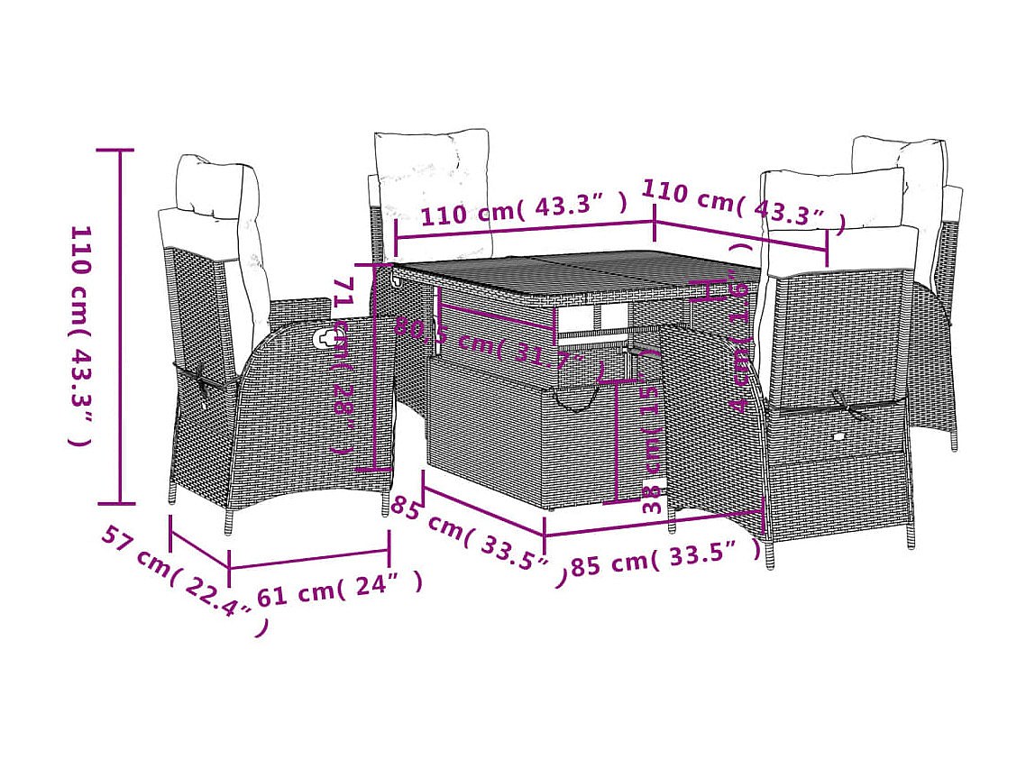 Boxmeer Ensemble à manger de jardin avec coussins 5pcs Beige poly rotin