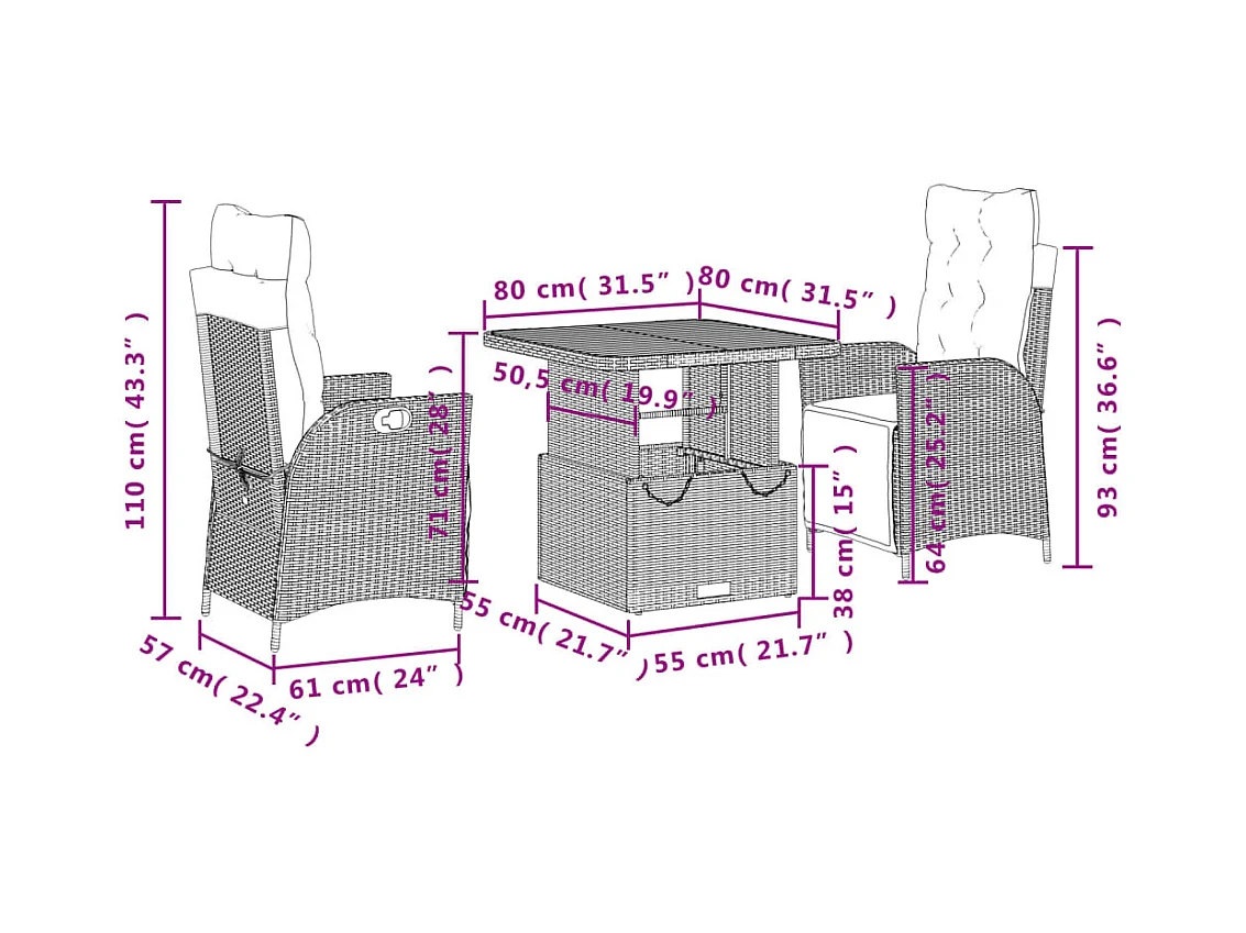 Arde Ensemble à manger de jardin et coussins 3 pcs Beige poly rotin