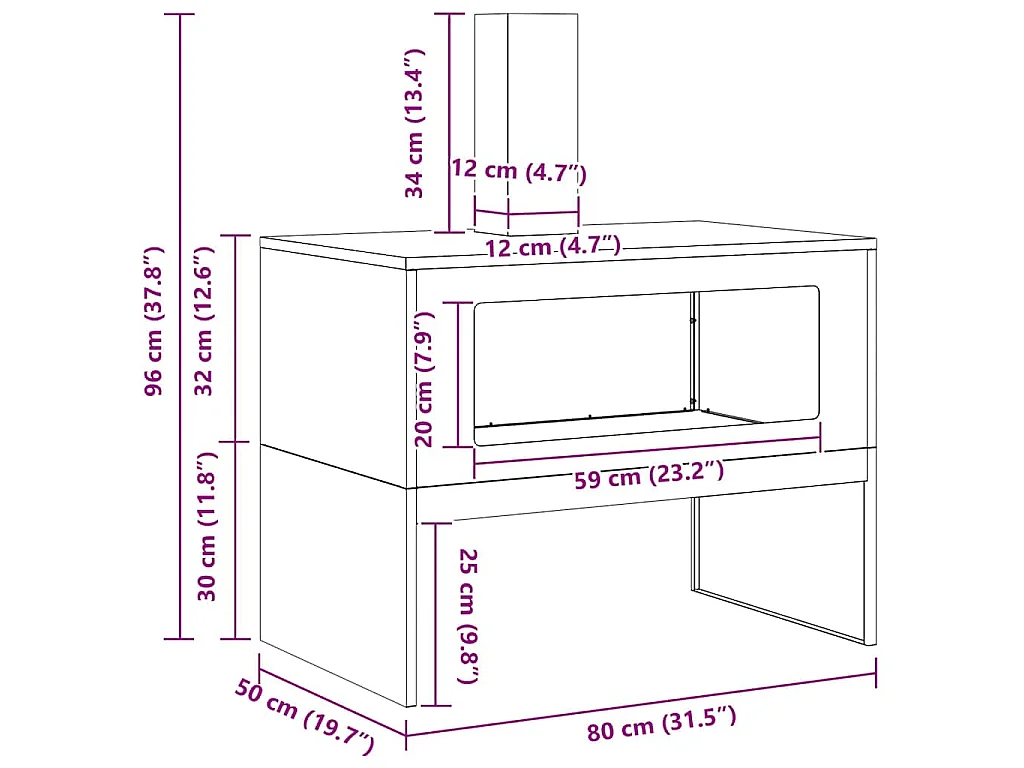 Braise Marron 80 x 50 x 96 cm Acier patiné