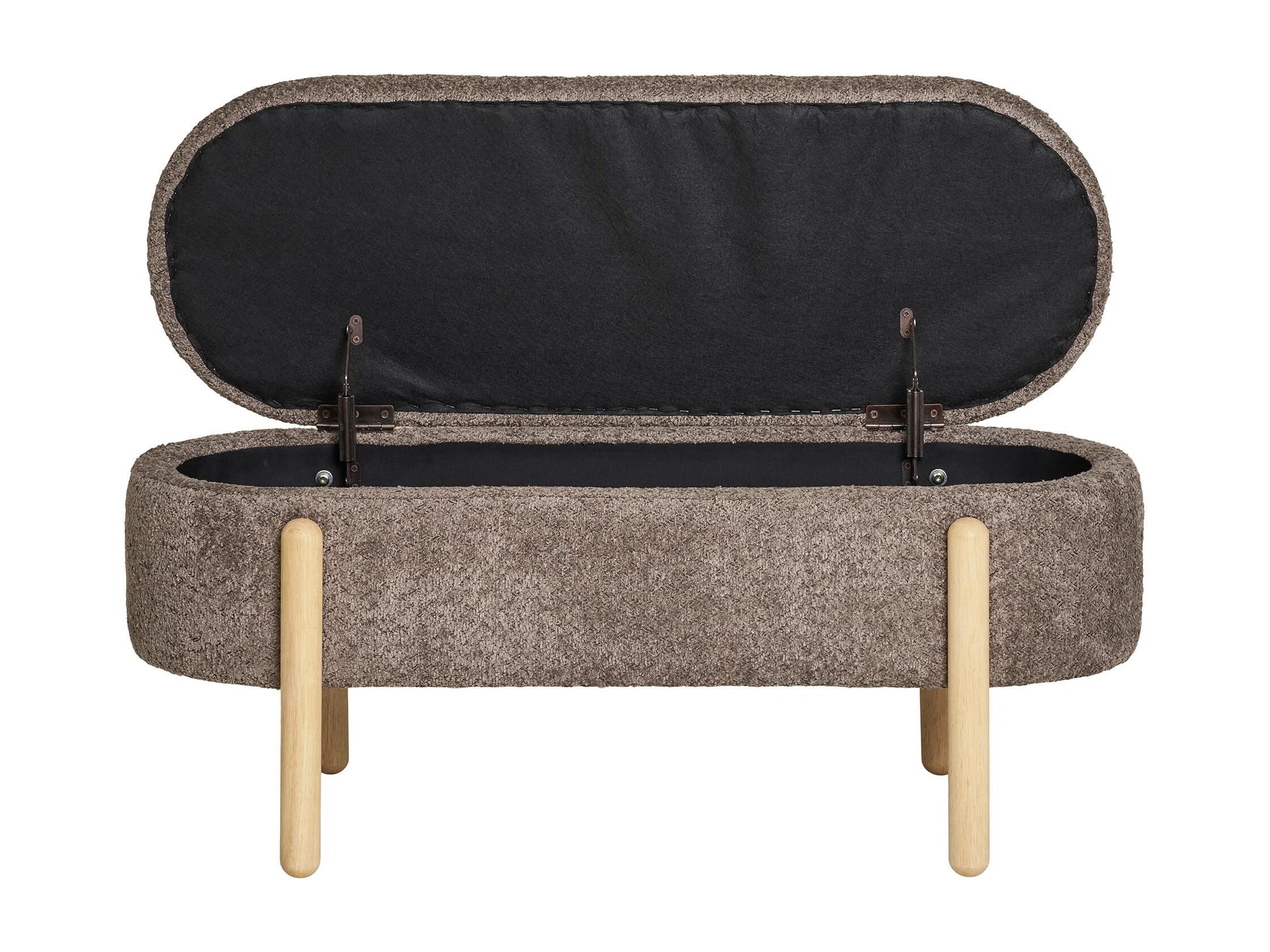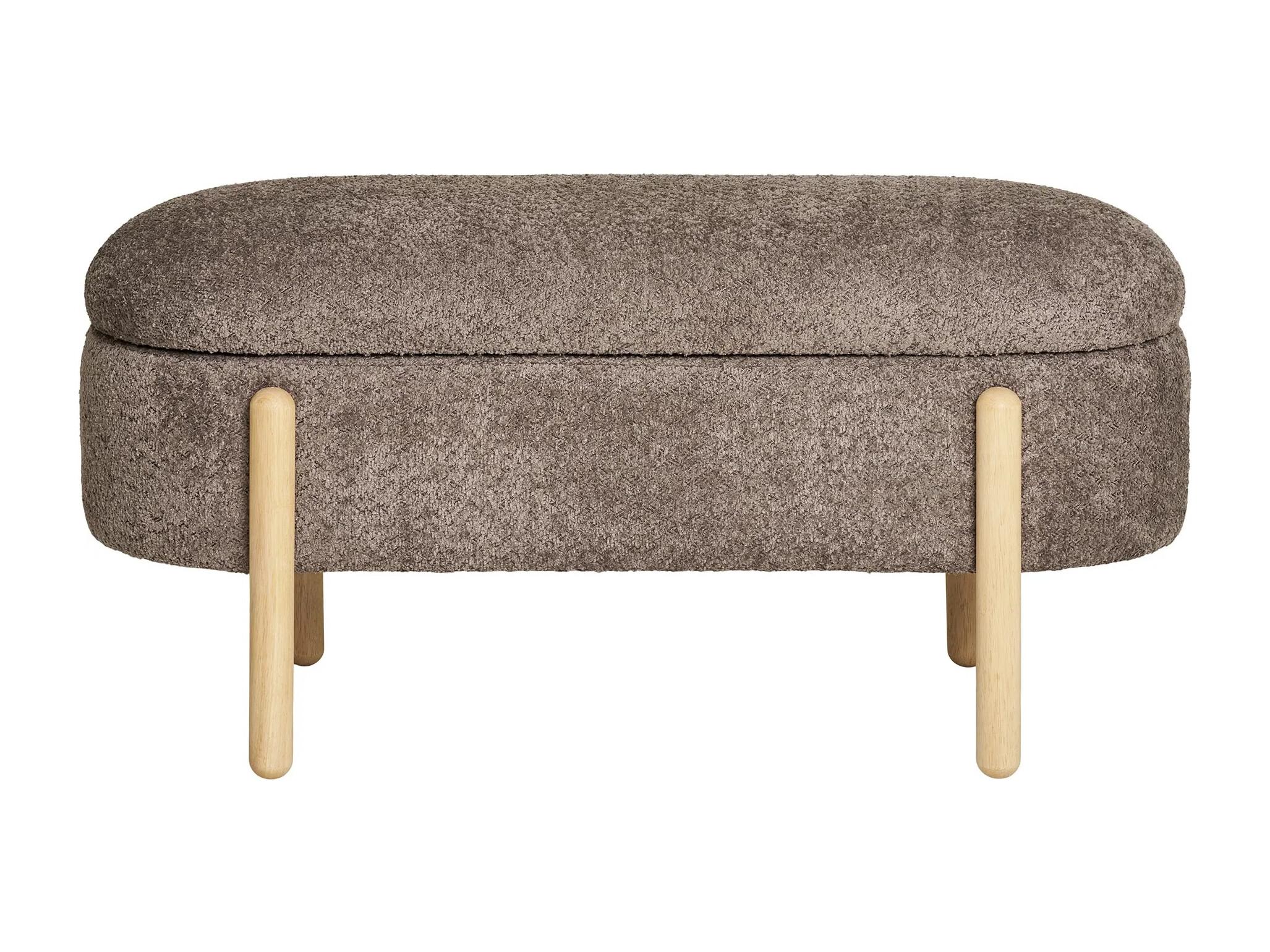 Banc avec rangement tissu marron & pieds en bois naturel BRANCA 97cm