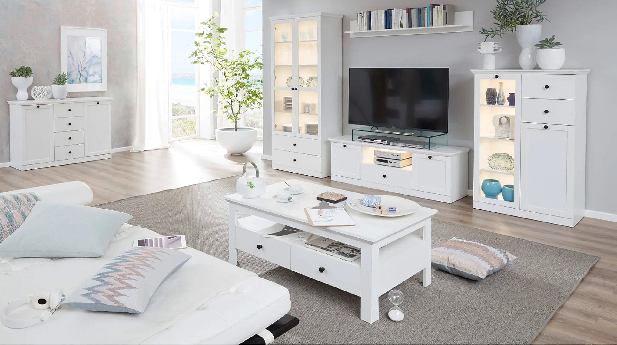 Ensemble meuble TV 4 pièces blanc mat Valex