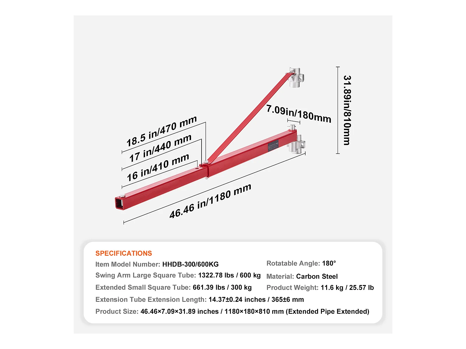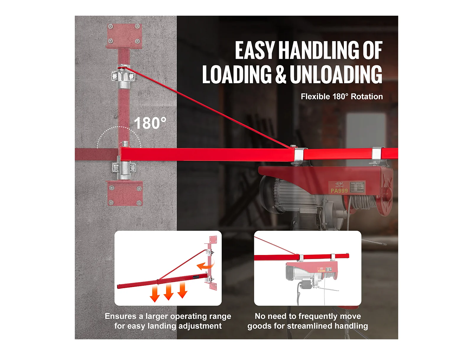 Bras de Support SucceBuy de Palan Électrique, Charge Maximale de 599 kg, Support Pivotant pour Échafaudage
