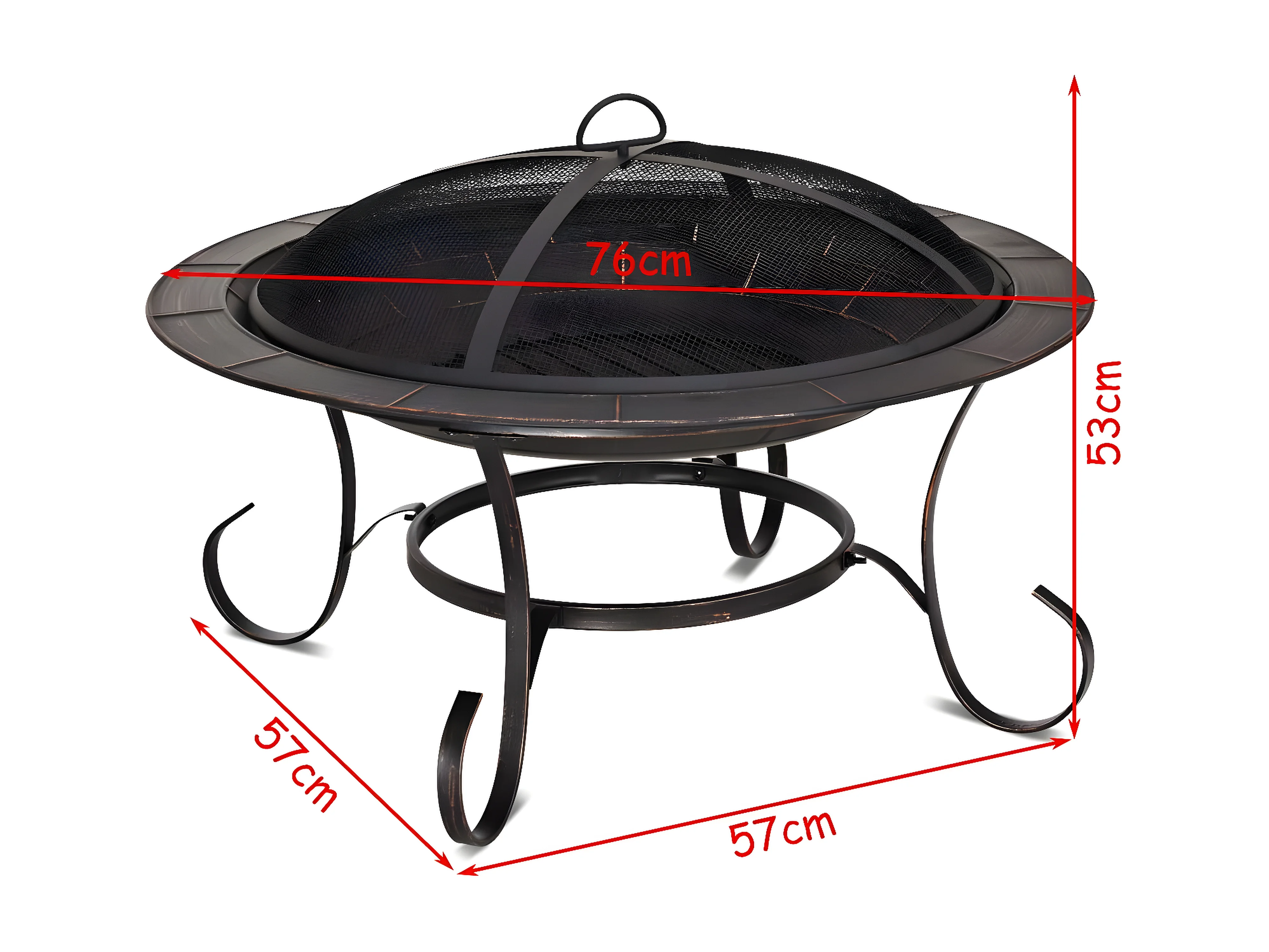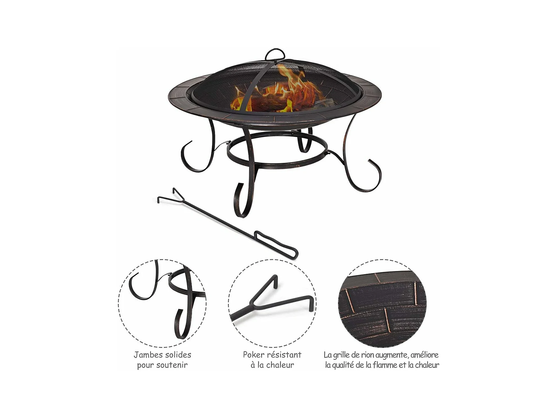 Brasero Exterieur de Jardin Brasero Terrasse en Acier avec Grille Pare-Etincelles Bol 76 cm de Diamètre Or Noir