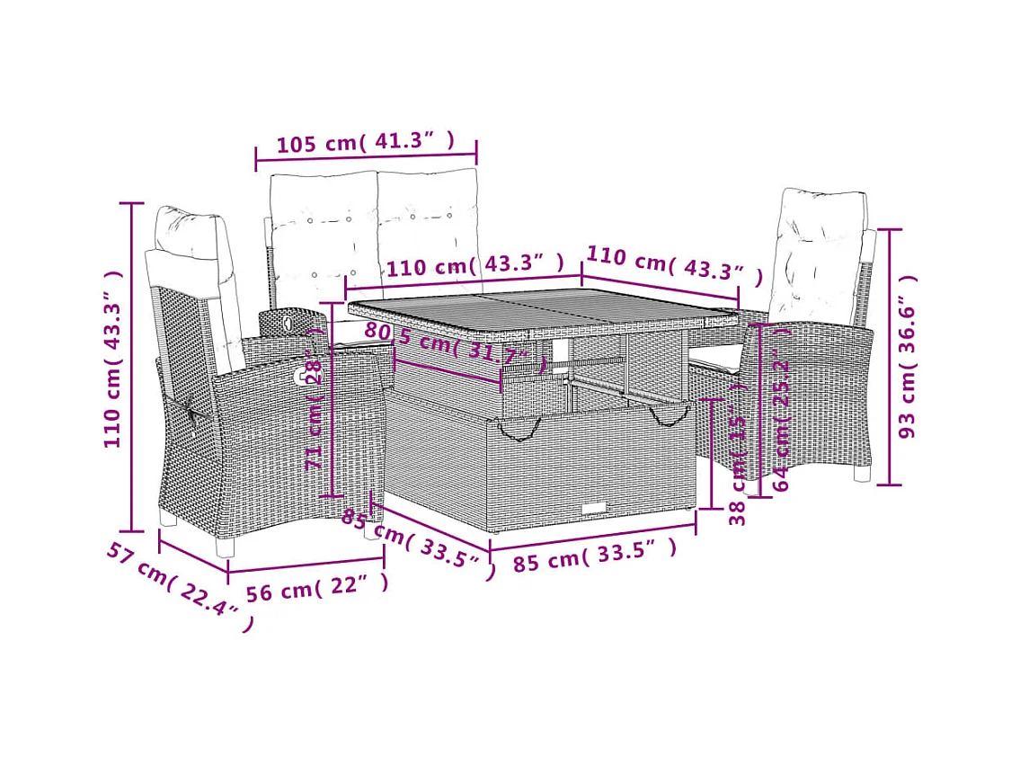 Brazil Ensemble à manger de jardin et coussins 2 pcs beige poly rotin