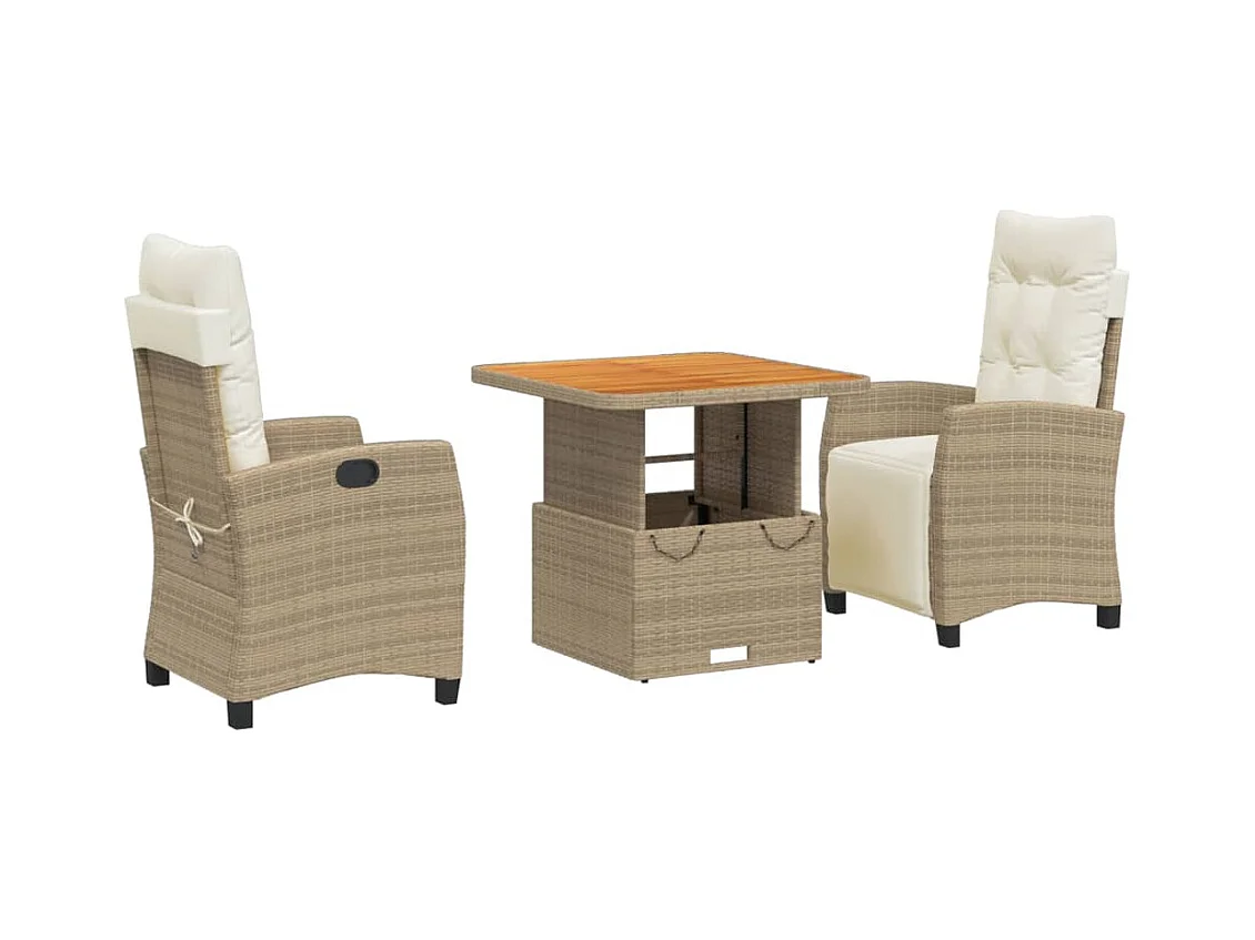 Arde Ensemble à manger de jardin et coussins 3 pcs Beige poly rotin