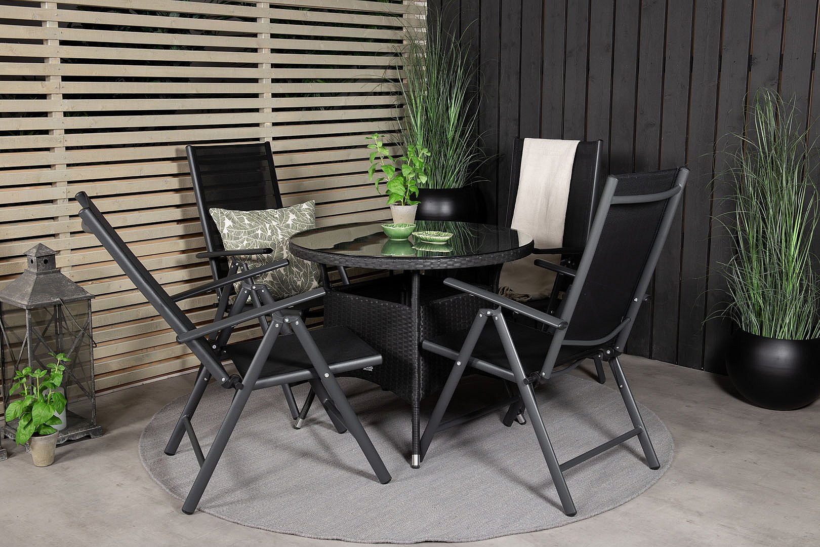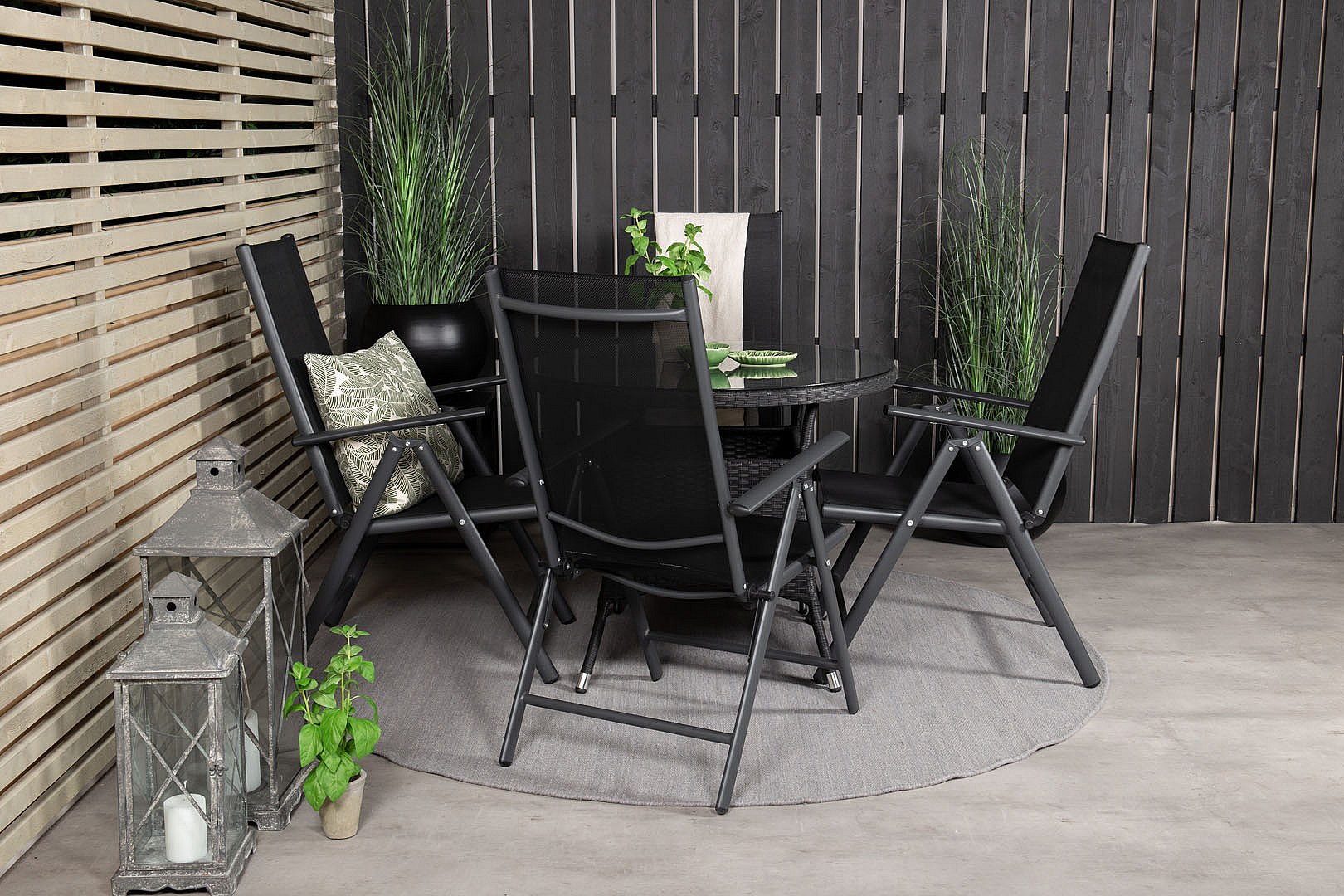 Kelly 1 x chaise de jardin, dossier réglable, 7 positions, noir/gris.