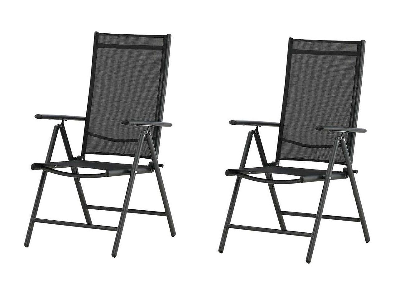 Lot de 2 Chaise de Jardin Exterieur, Fauteuil de Jardin, Verrouillage de Sécurité, Cadre en Métal, Chaise Pliante Camping, 62 x 58 x 96 cm, Charge 150 kg, Noir