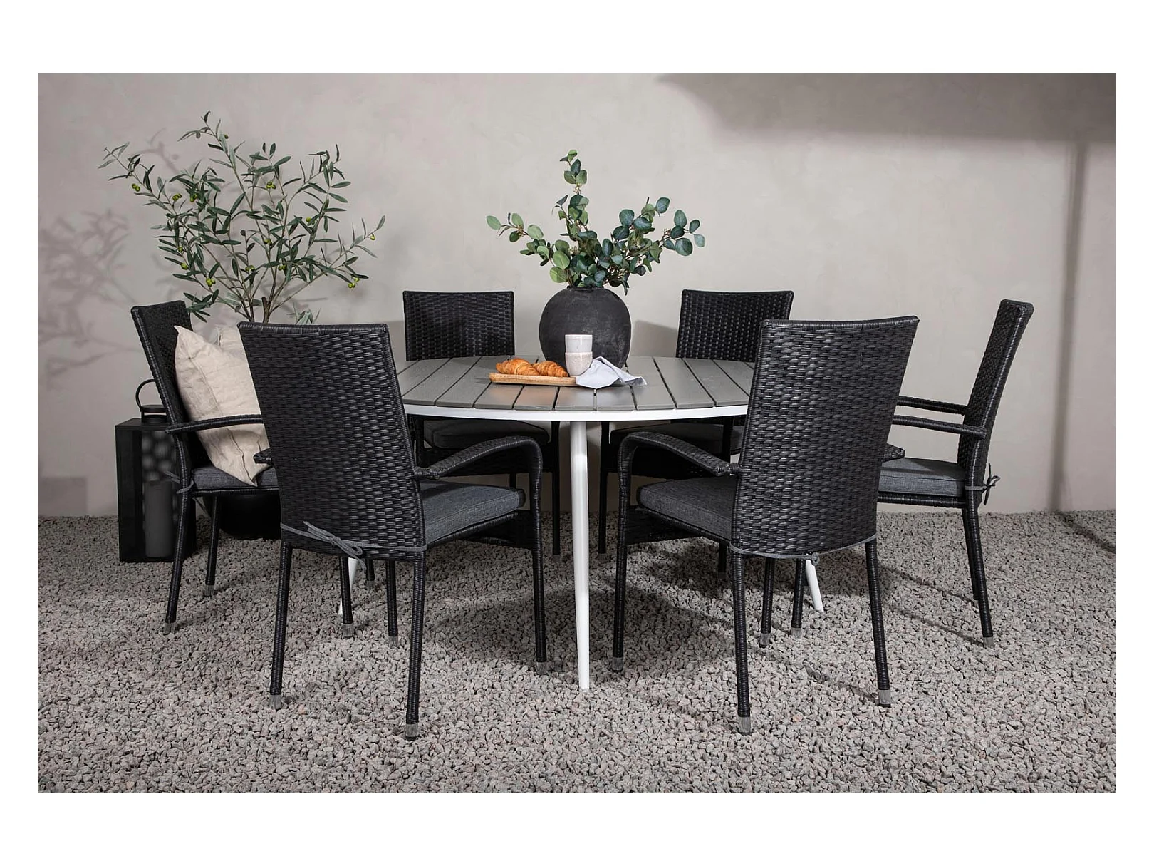 Break ensemble table et chaises de jardin, table 150x150cm, 6 chaises Anna, gris,noir.