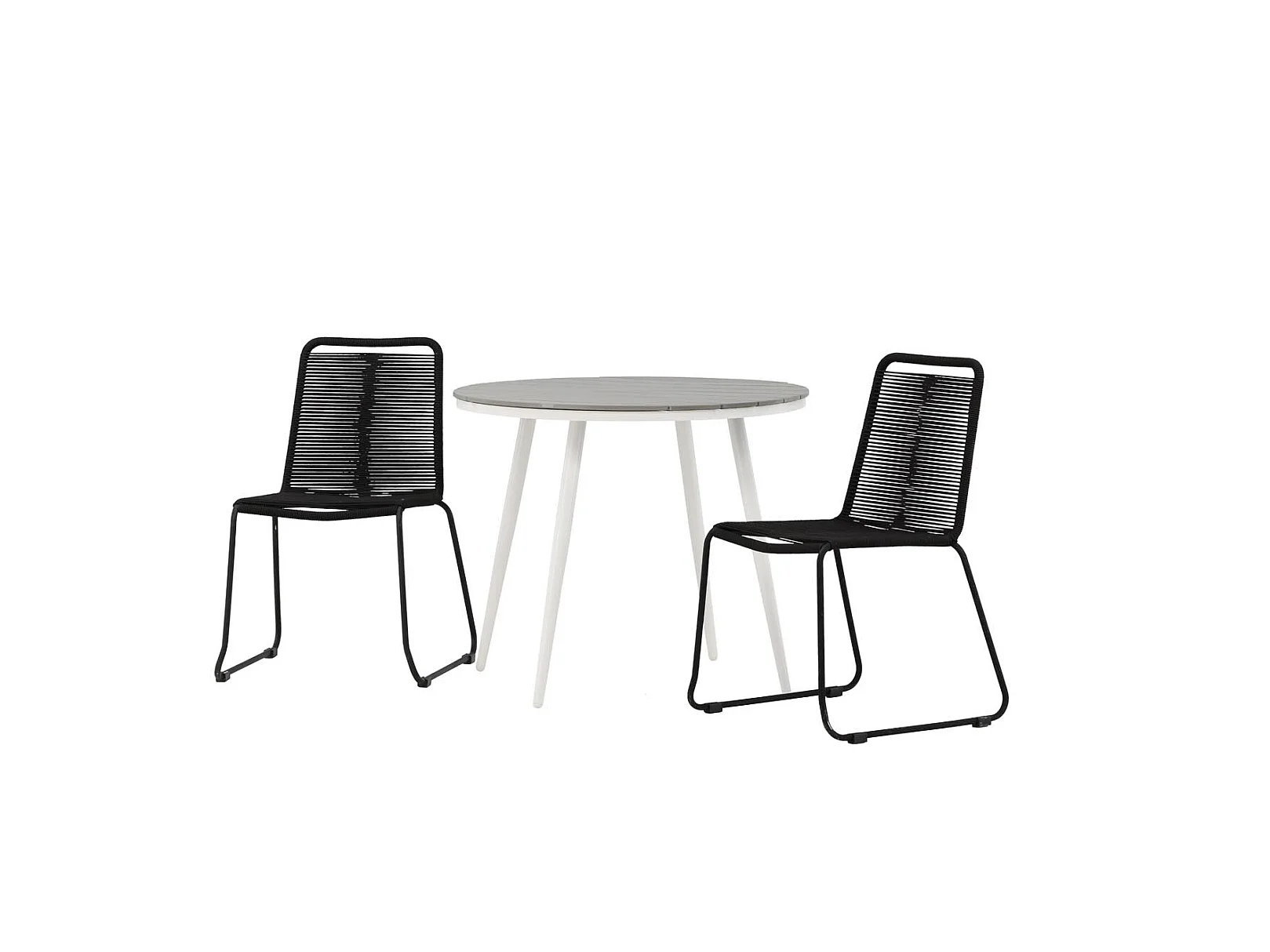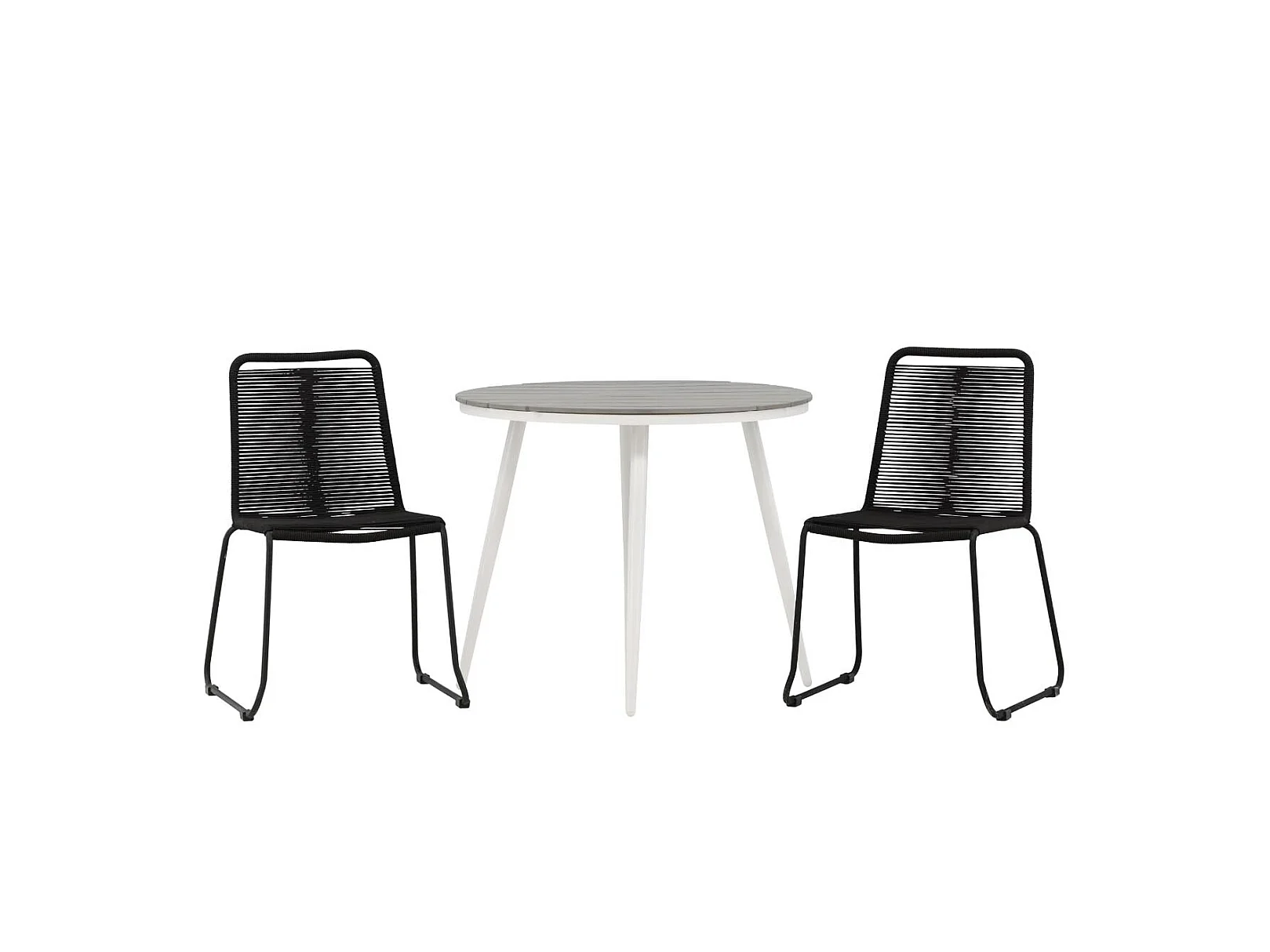 Break ensemble table et chaises de jardin, table 90x90cm, 2 chaises Lindos, gris,noir.