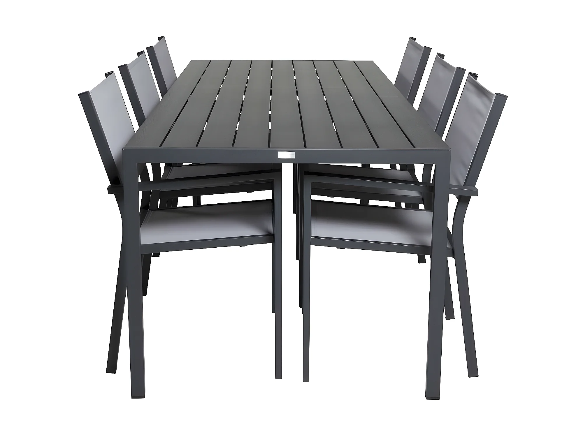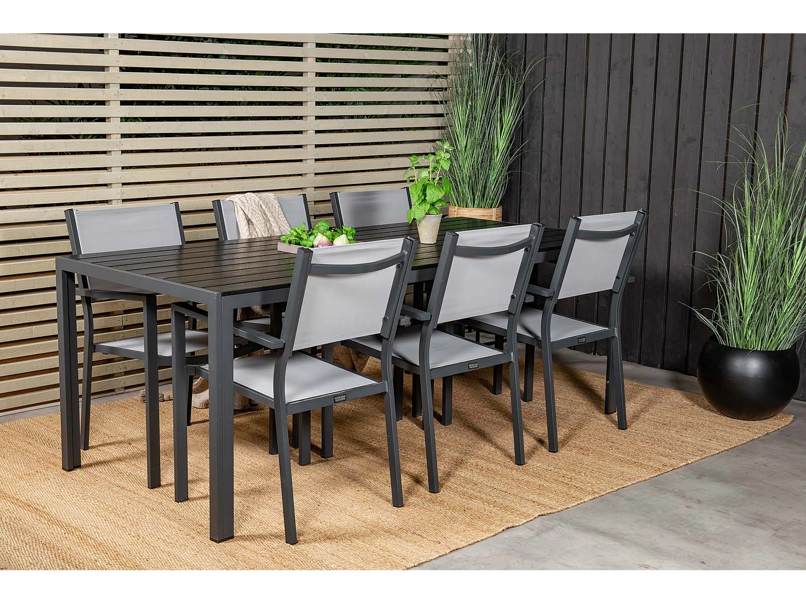 Break set de jardin table 90x205cm noir, 6 chaises Copacabana gris.