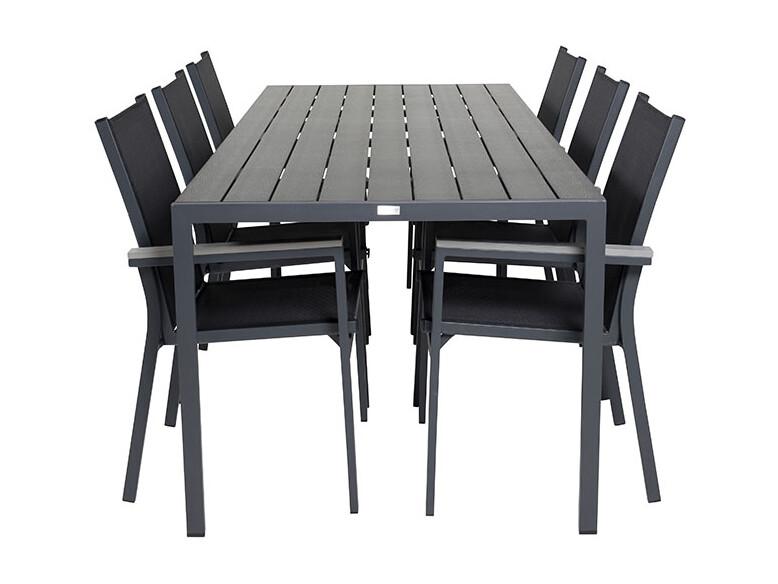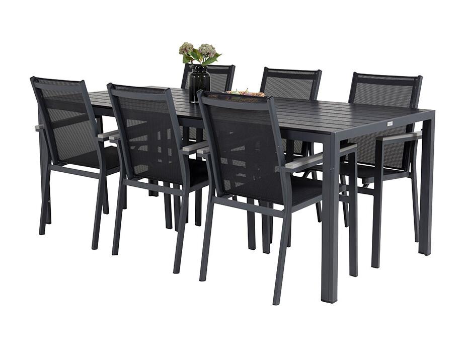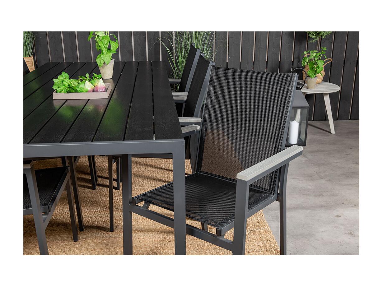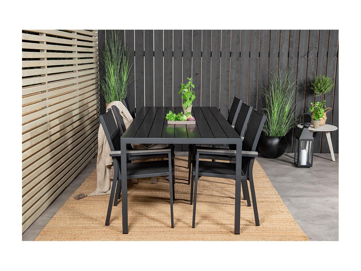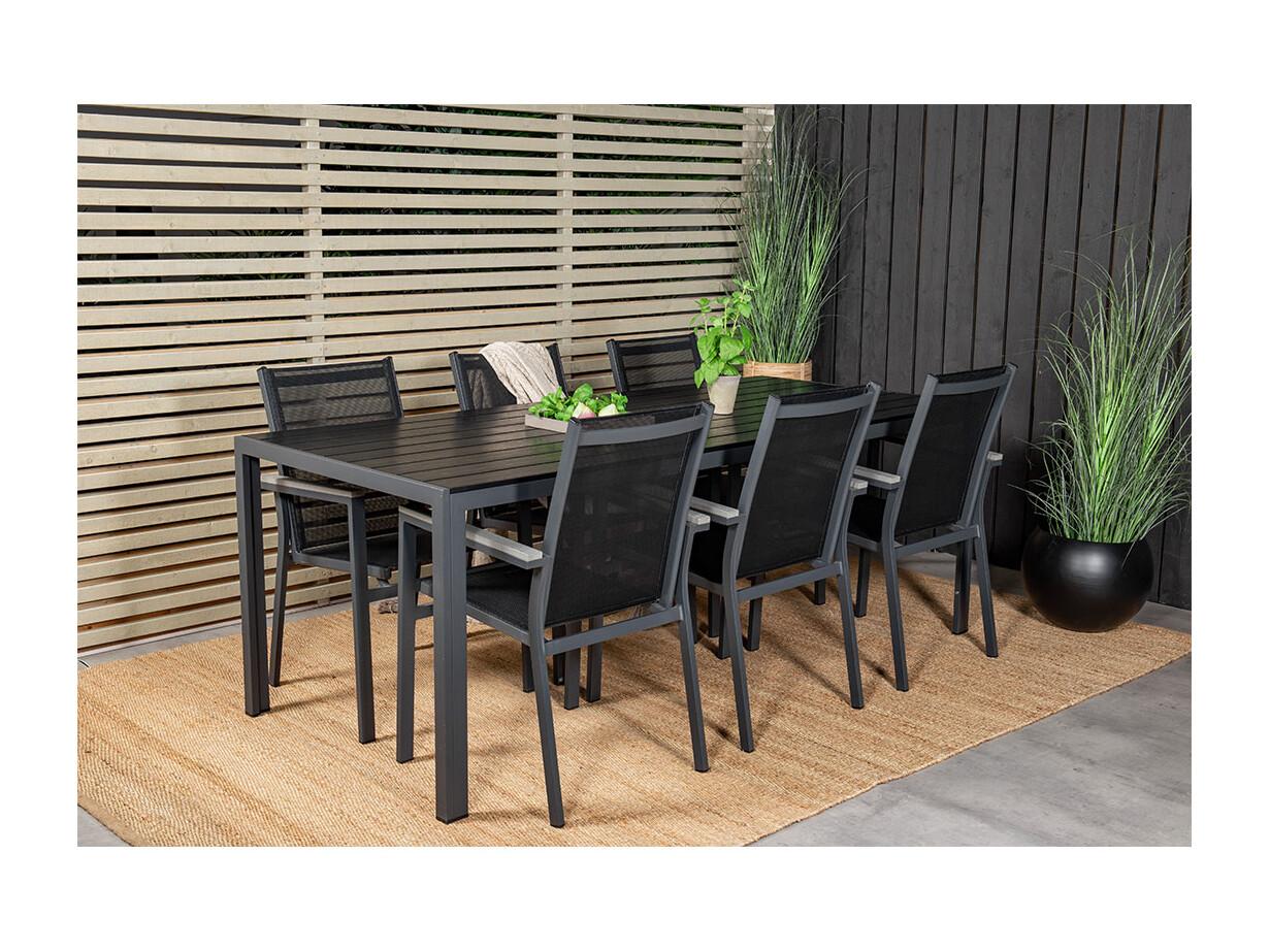 Break set de jardin table 90x205cm noir, 6 chaises noires.