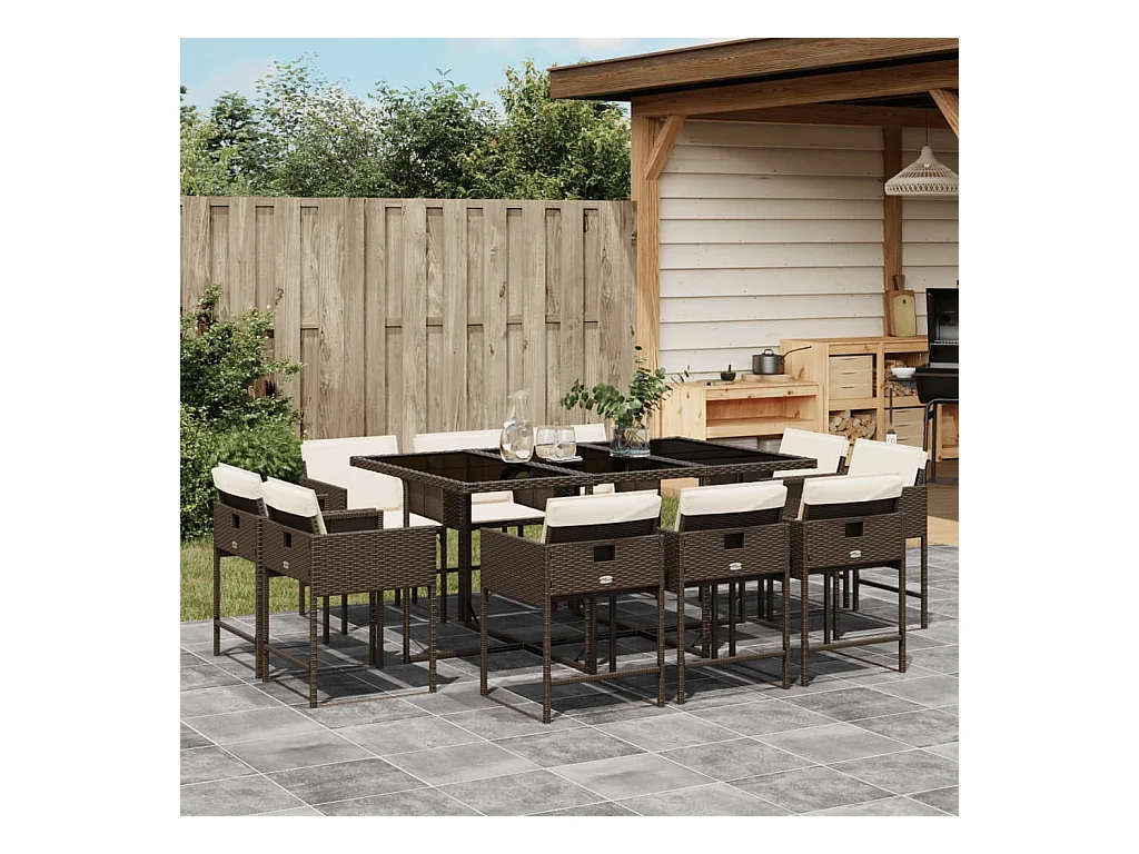 Jeroen Ensemble à manger de jardin et coussins 11 pcs marron rotin