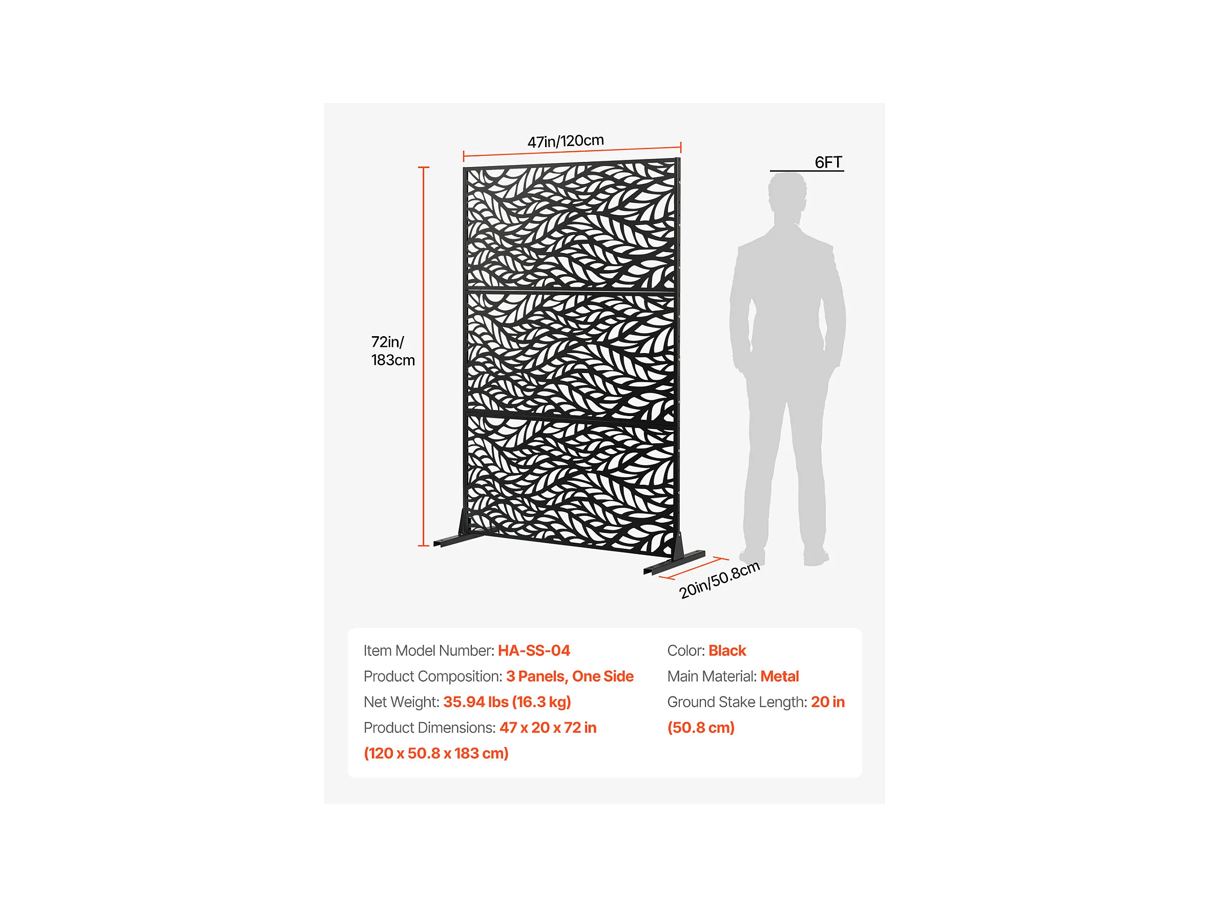 Brise-vue Paravent, SucceBuy Écran de Confidentialité en Métal, 120 x 183 CM, Panneaux Extérieurs, Noir