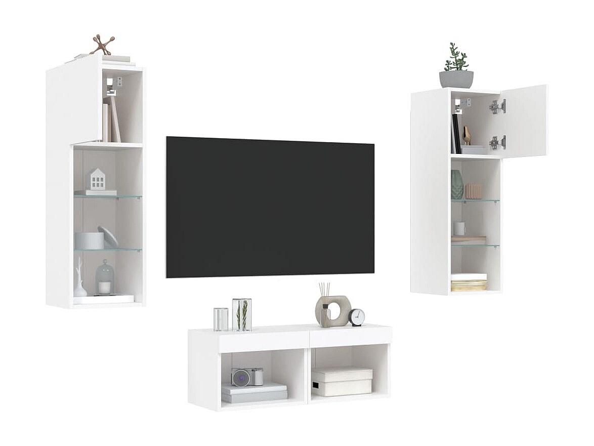 Brisora Meuble TV muraux 4 pcs avec lumières LED blanc
