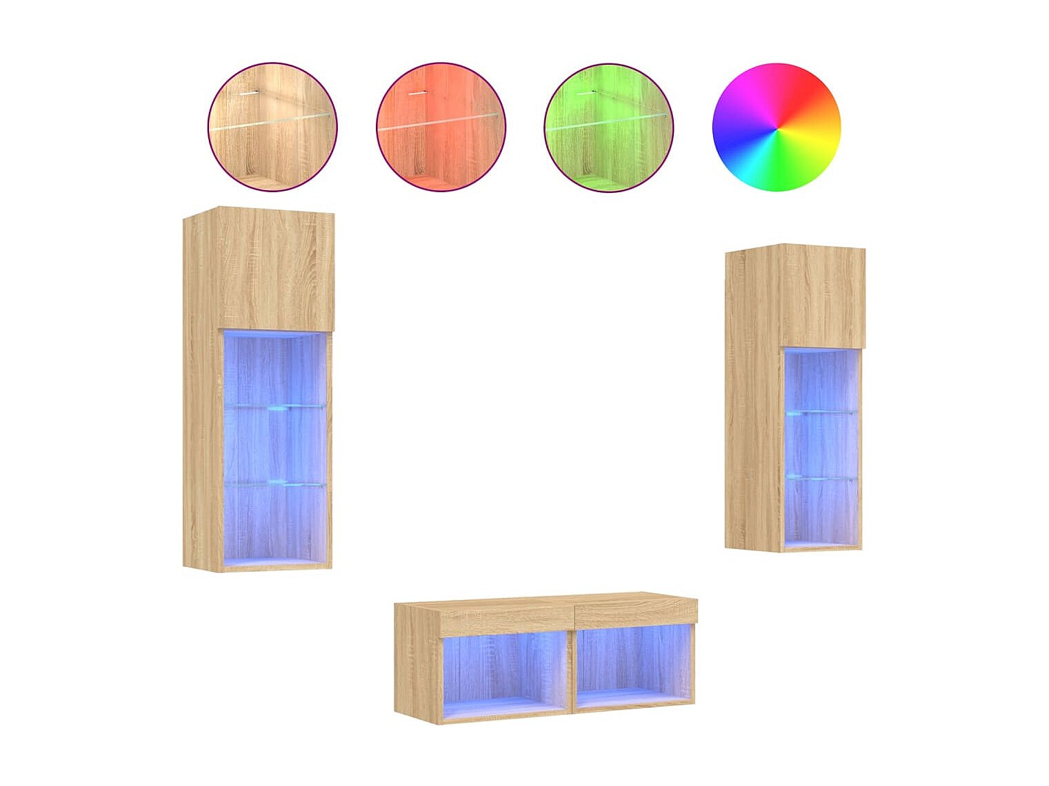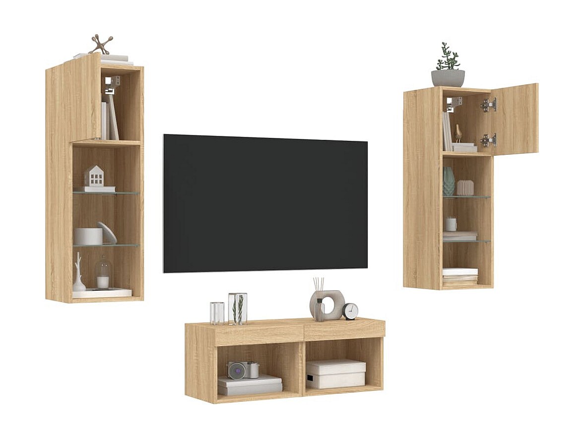 Brisora Meuble TV muraux 4 pcs avec lumières LED chêne sonoma
