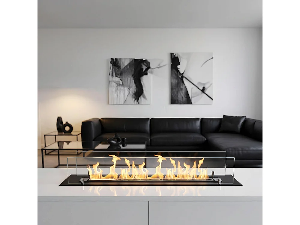 Brûleur de cheminée au bioéthanol en acier avec verre de 65 cm