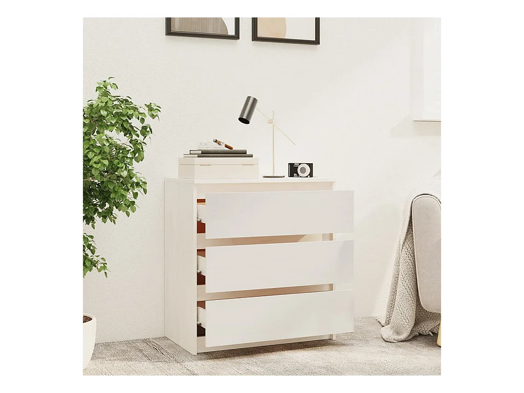 Bryna Table de chevet Blanc 60x36x64 cm Bois de pin massif