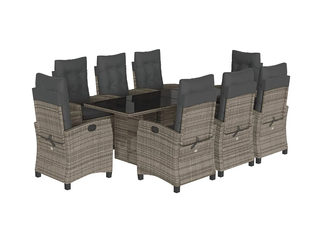 Igmar Ensemble à manger de jardin 9 pcs coussins gris résine tressée