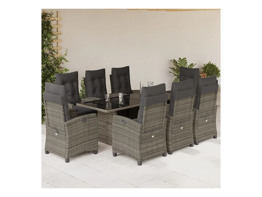 Anselm Ensemble à manger de jardin 9 pcs coussins gris résine tressée