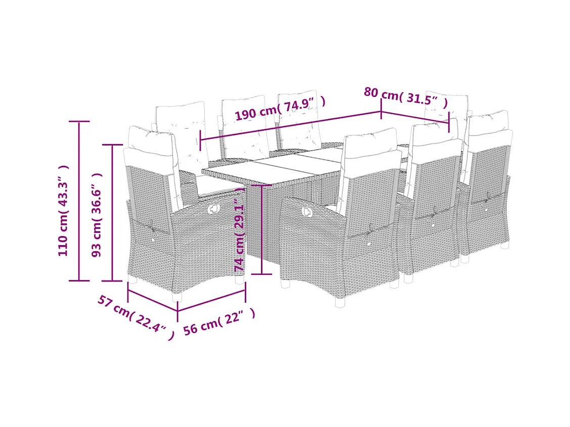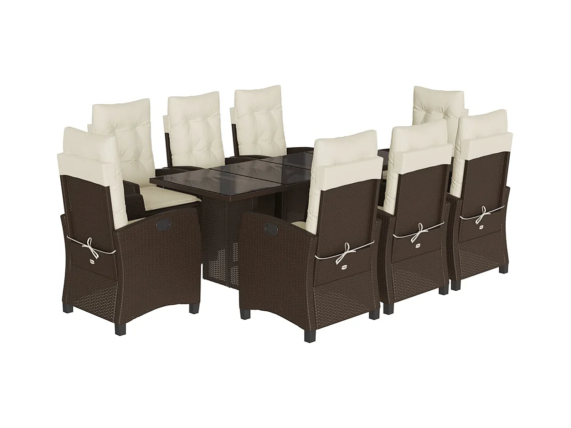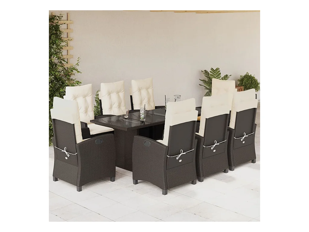 Anselm Ensemble à manger de jardin et coussins 9 pcs marron poly rotin