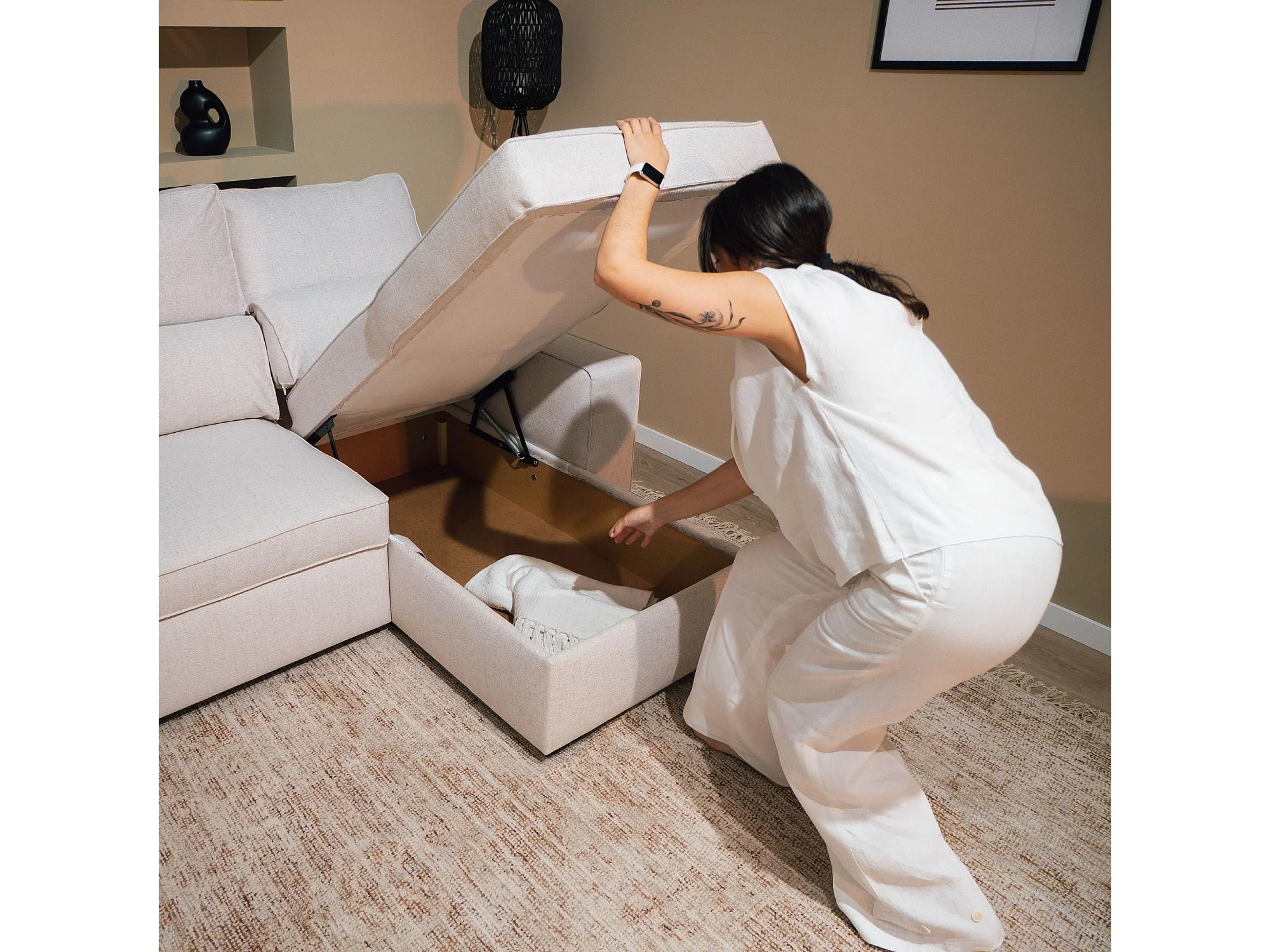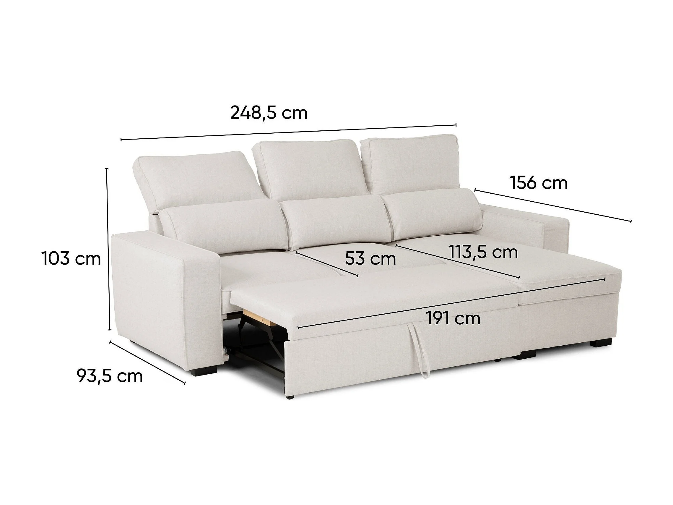 Canapé-lit 3 Places Beige - Chaise Longue Réversible Côté Droit/Gauche avec Rangement Intégré (248,5 x 117 x 103 cm) - HARPER