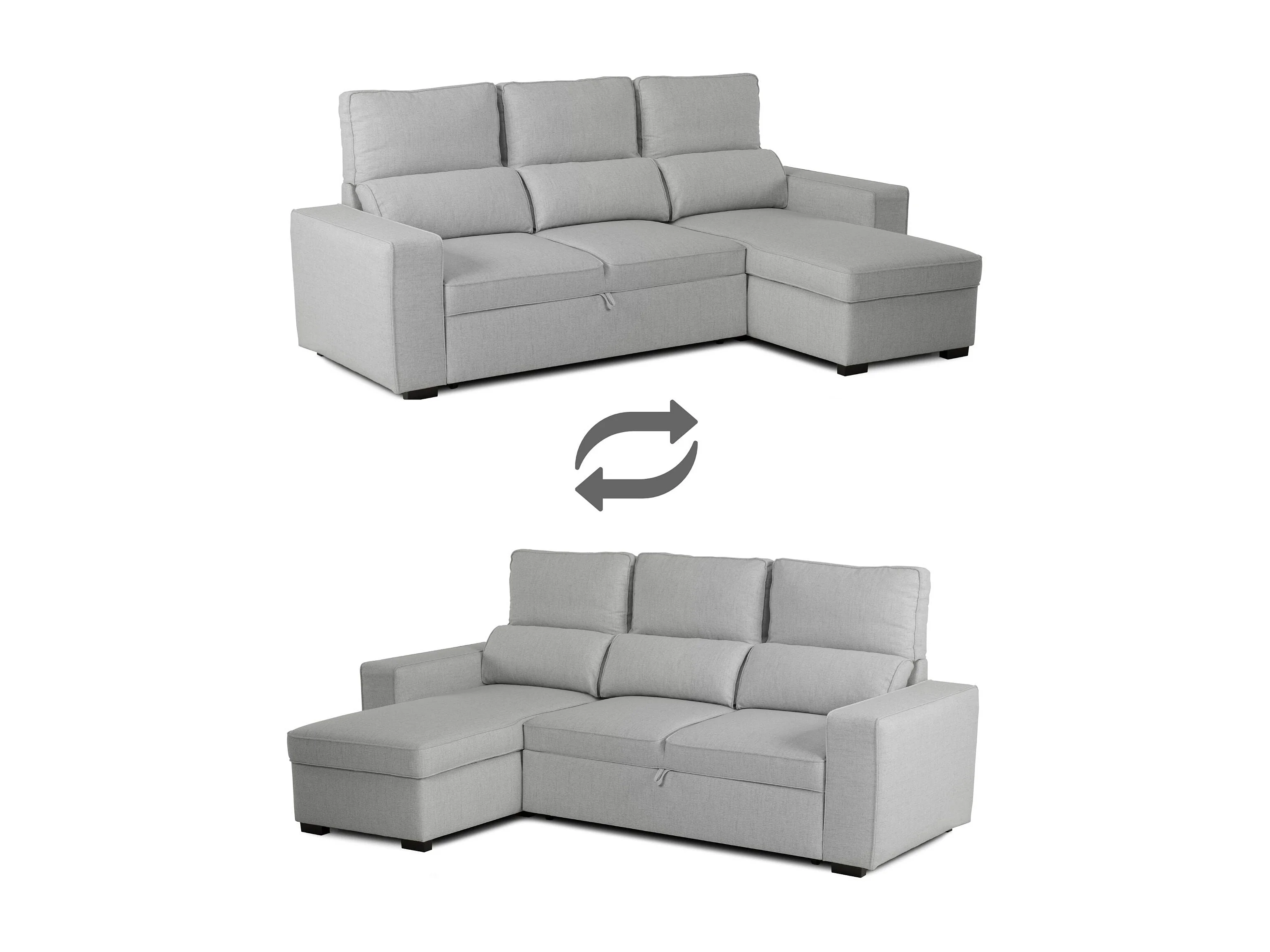 Canapé-lit 3 Places Gris - Chaise Longue Réversible Côté Droit/Gauche avec Rangement Intégré (248,5 x 117 x 103 cm) - HARPER