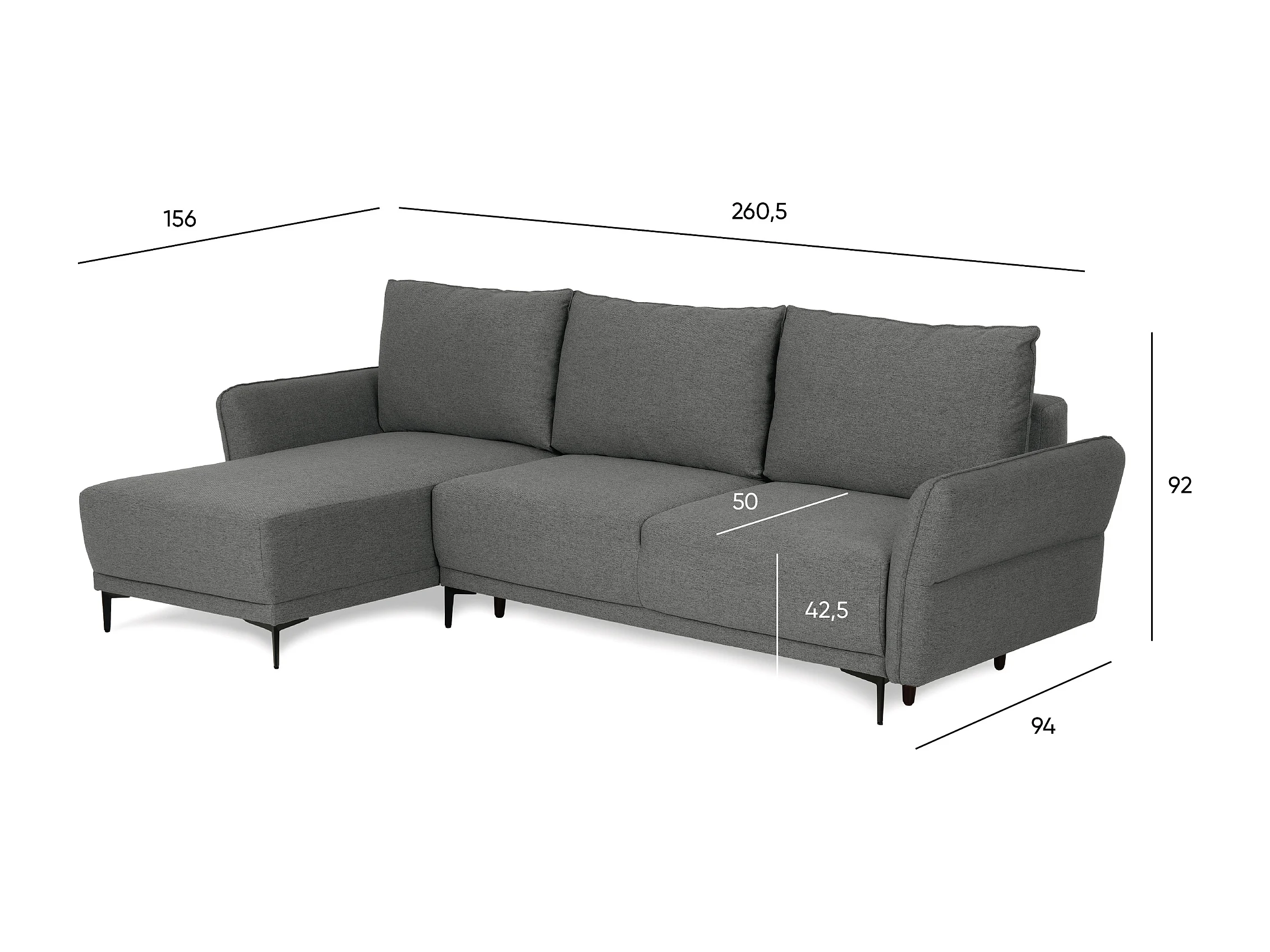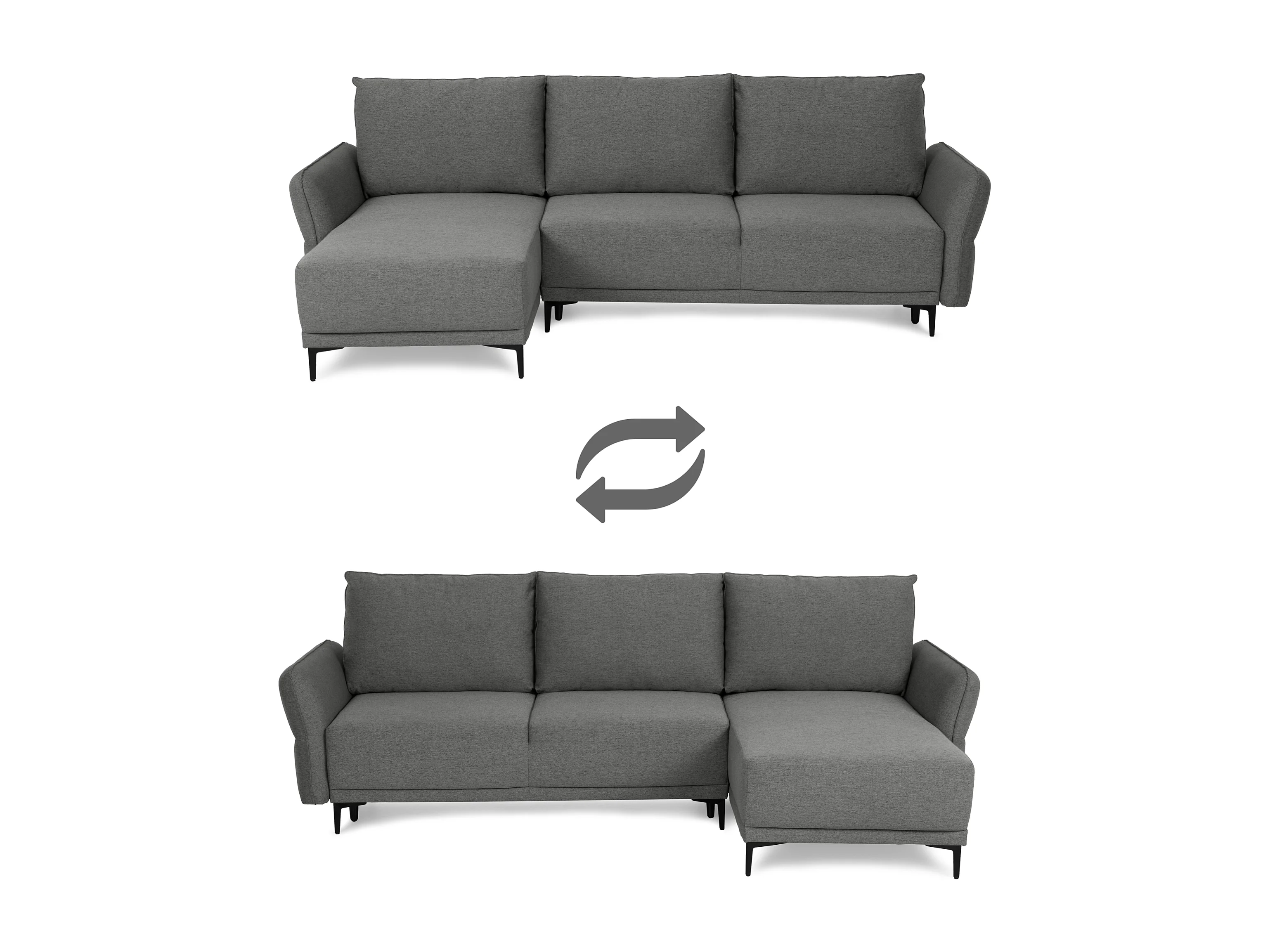 Canapé-lit 3 Places Gris Volcan avec Chaise Longue Réversible Côté Droit/Gauche (260,5 x 156 x 92 cm) - TOBY