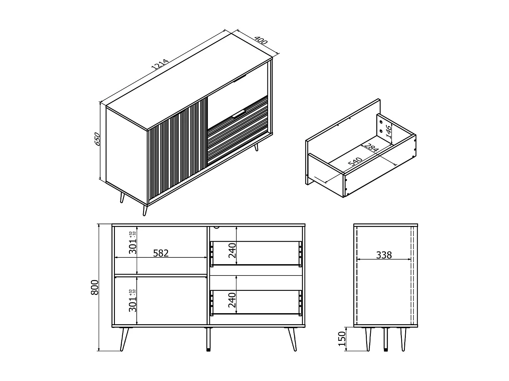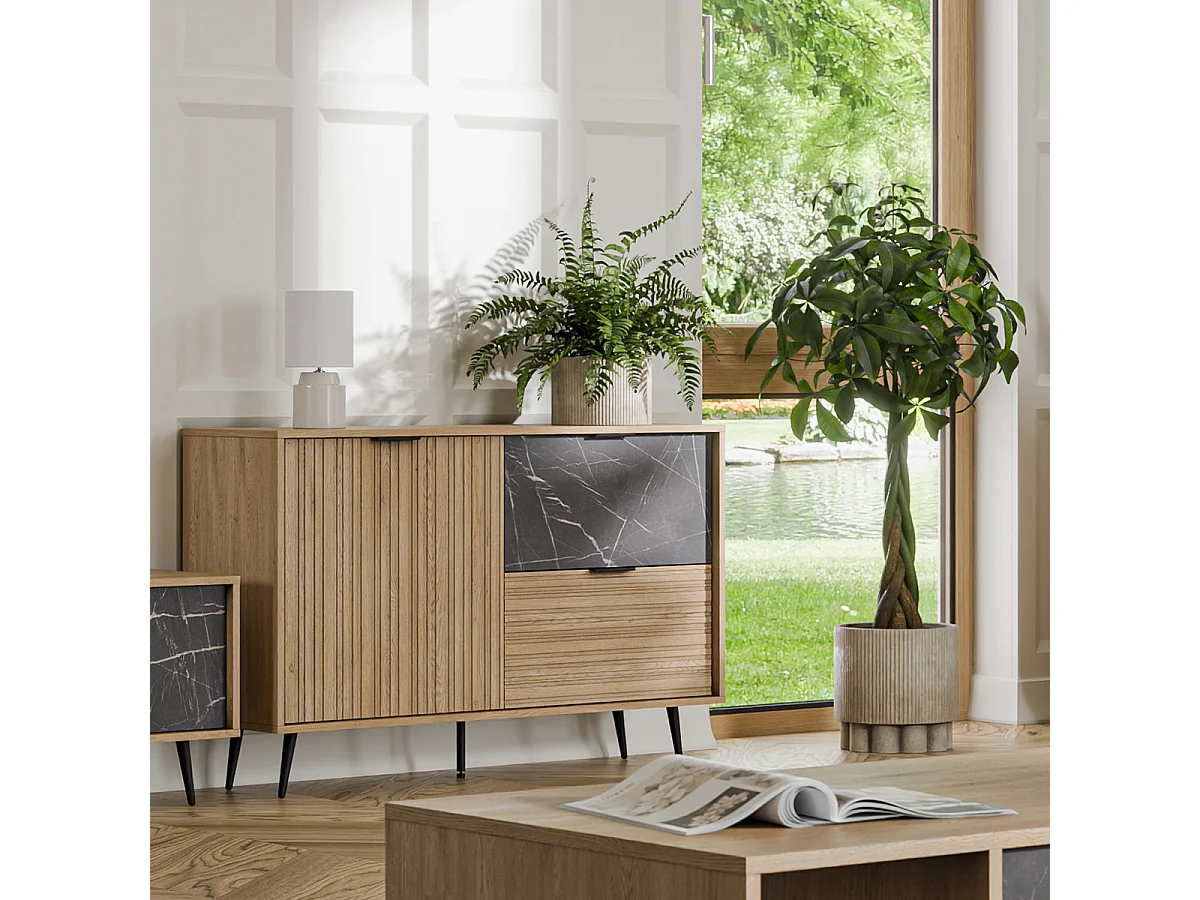 Buffet 1 porte 2 tiroirs Luka Bois et Noir