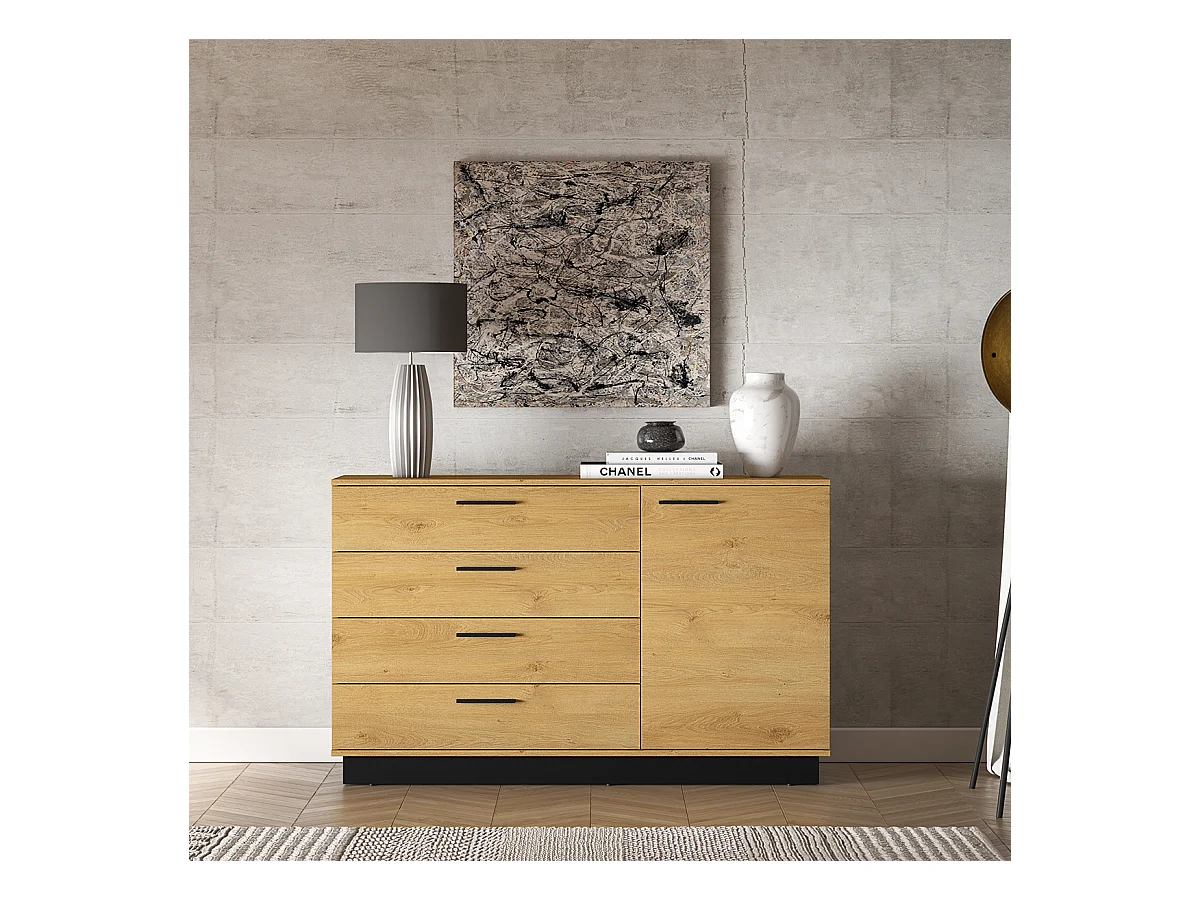 Buffet 1 porte 4 tiroirs Ysia Bois et Noir