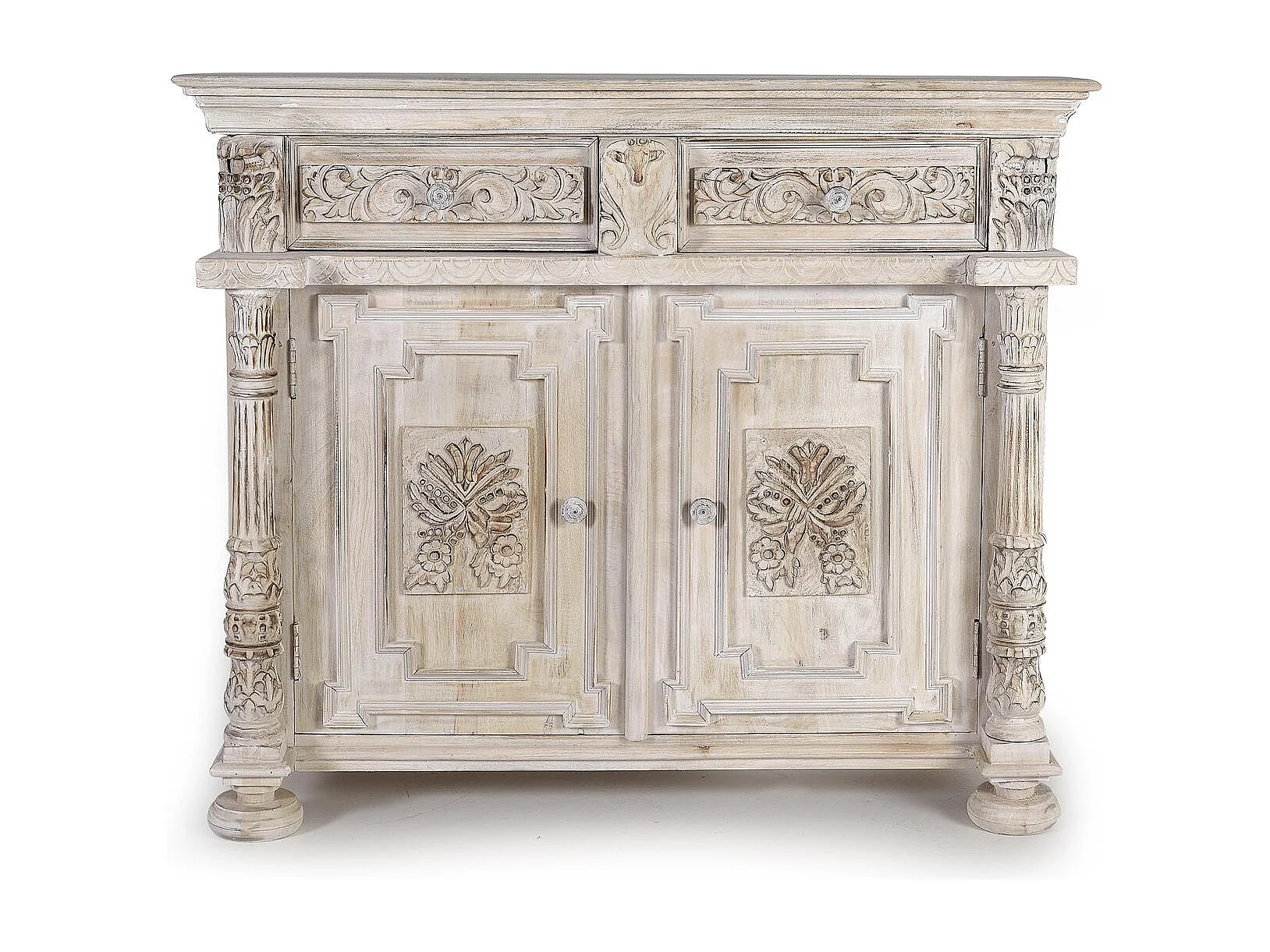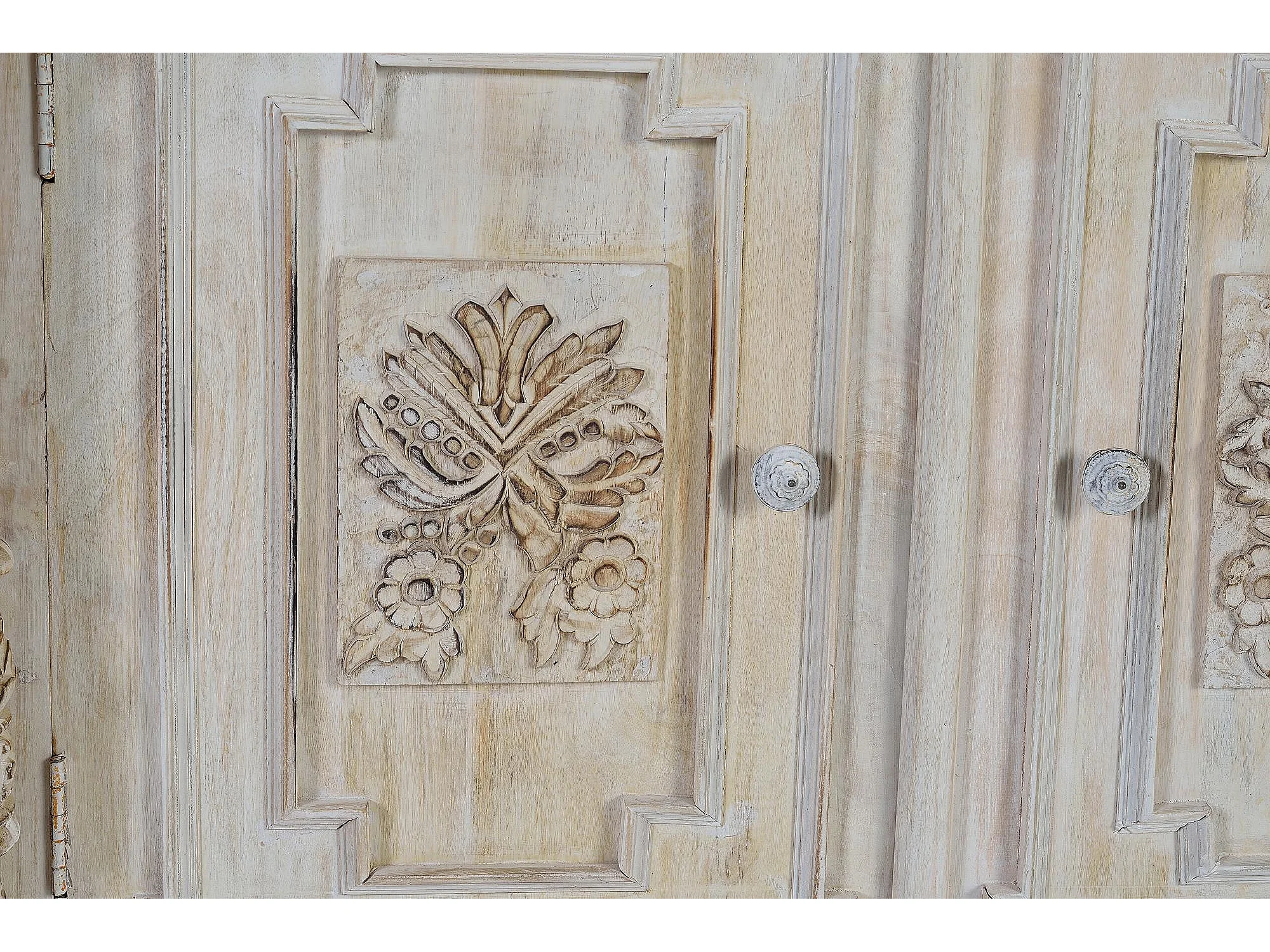 Vitrine en manguier, pieds métal blanc et gris vieilli