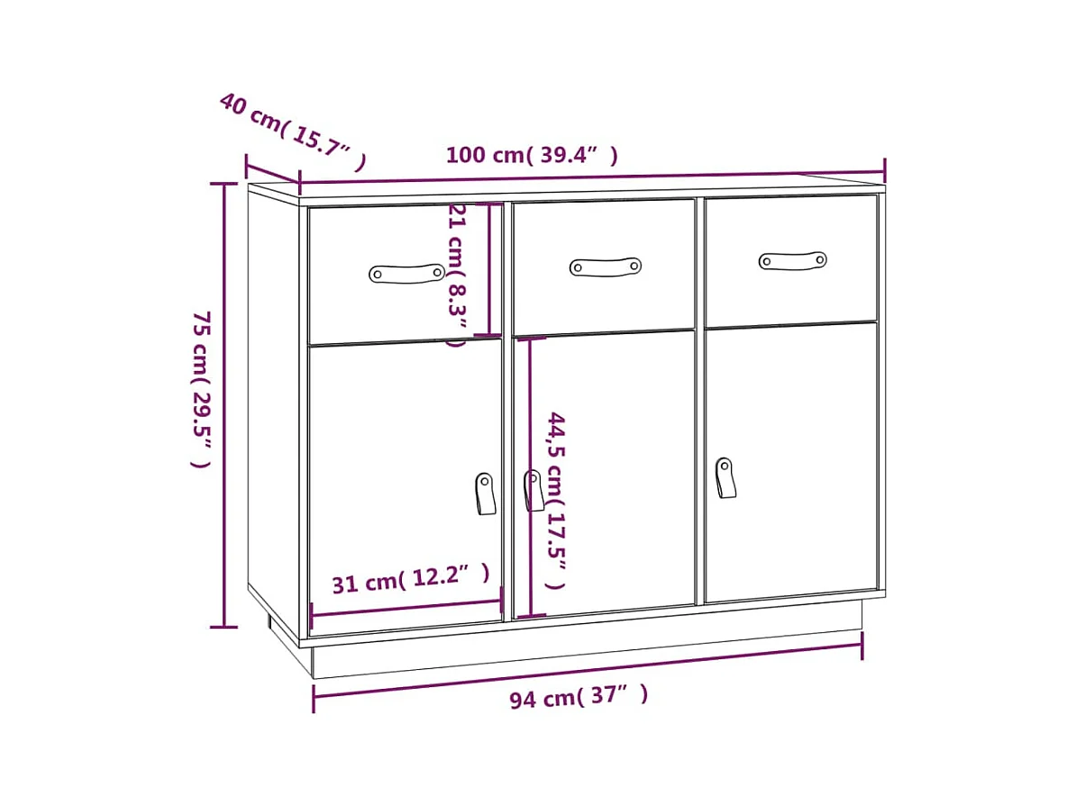Buffet 100x40x75 cm Bois massif de pin