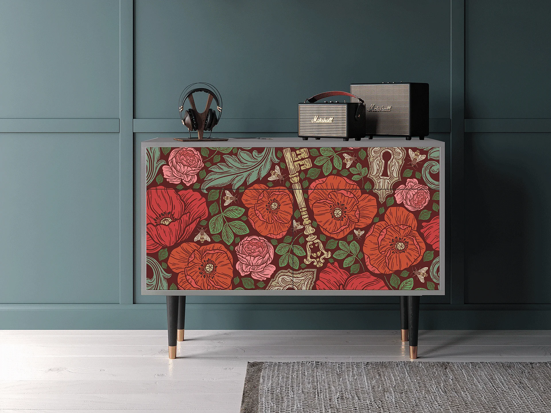 Buffet - 115x85x48 cm - BS4 - Poppy Garden, Gris
