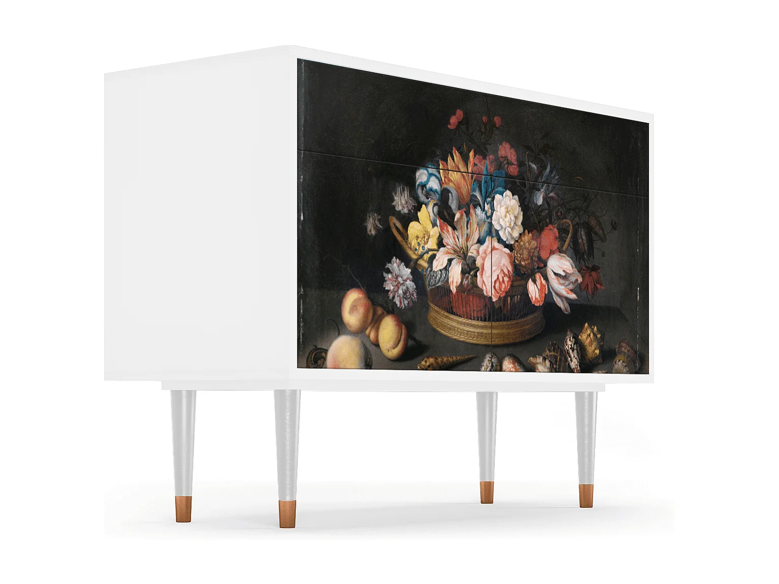 Buffet - 115x85x48 cm - BS4 - Still Life with Flowers, Blanc