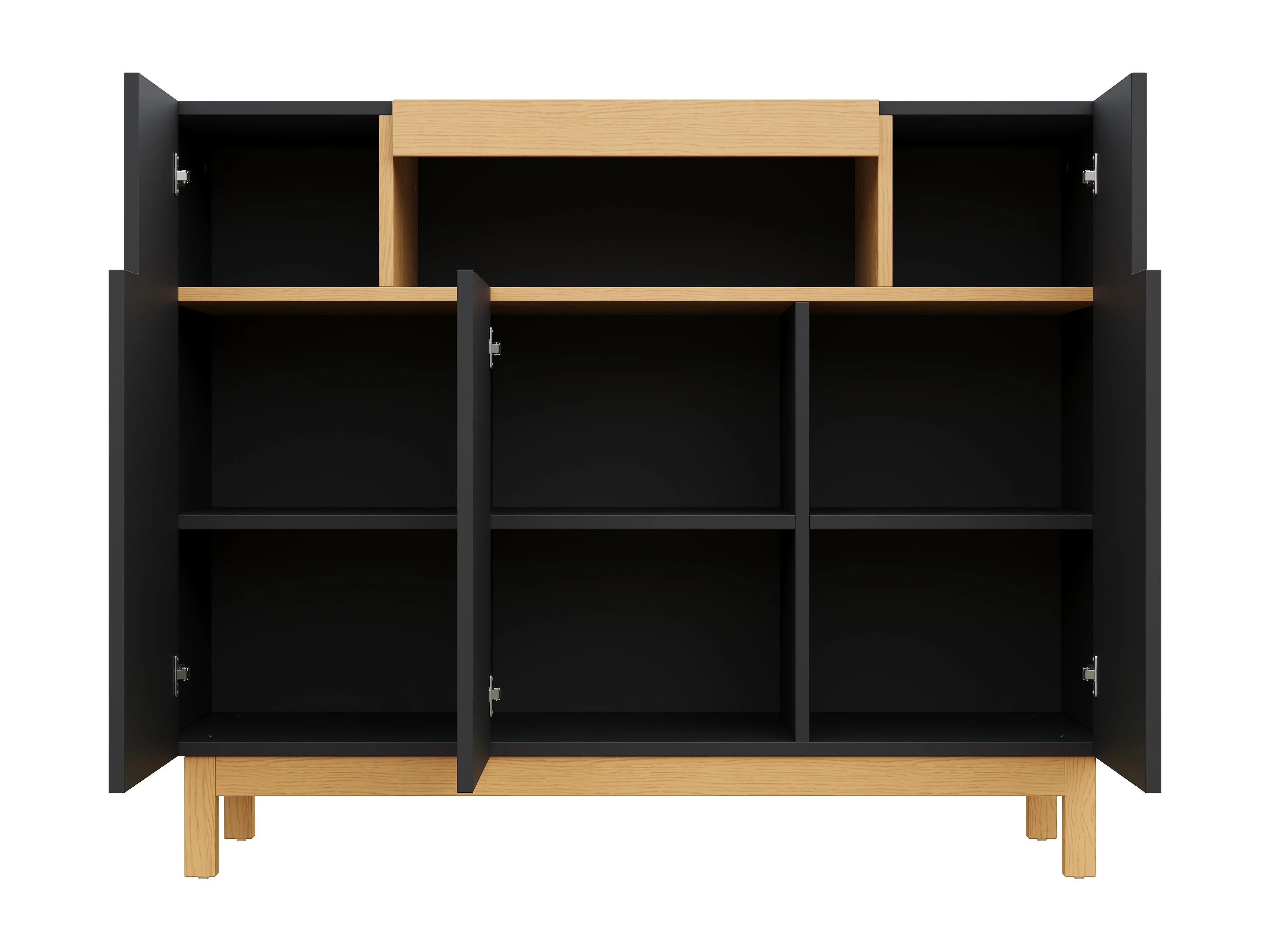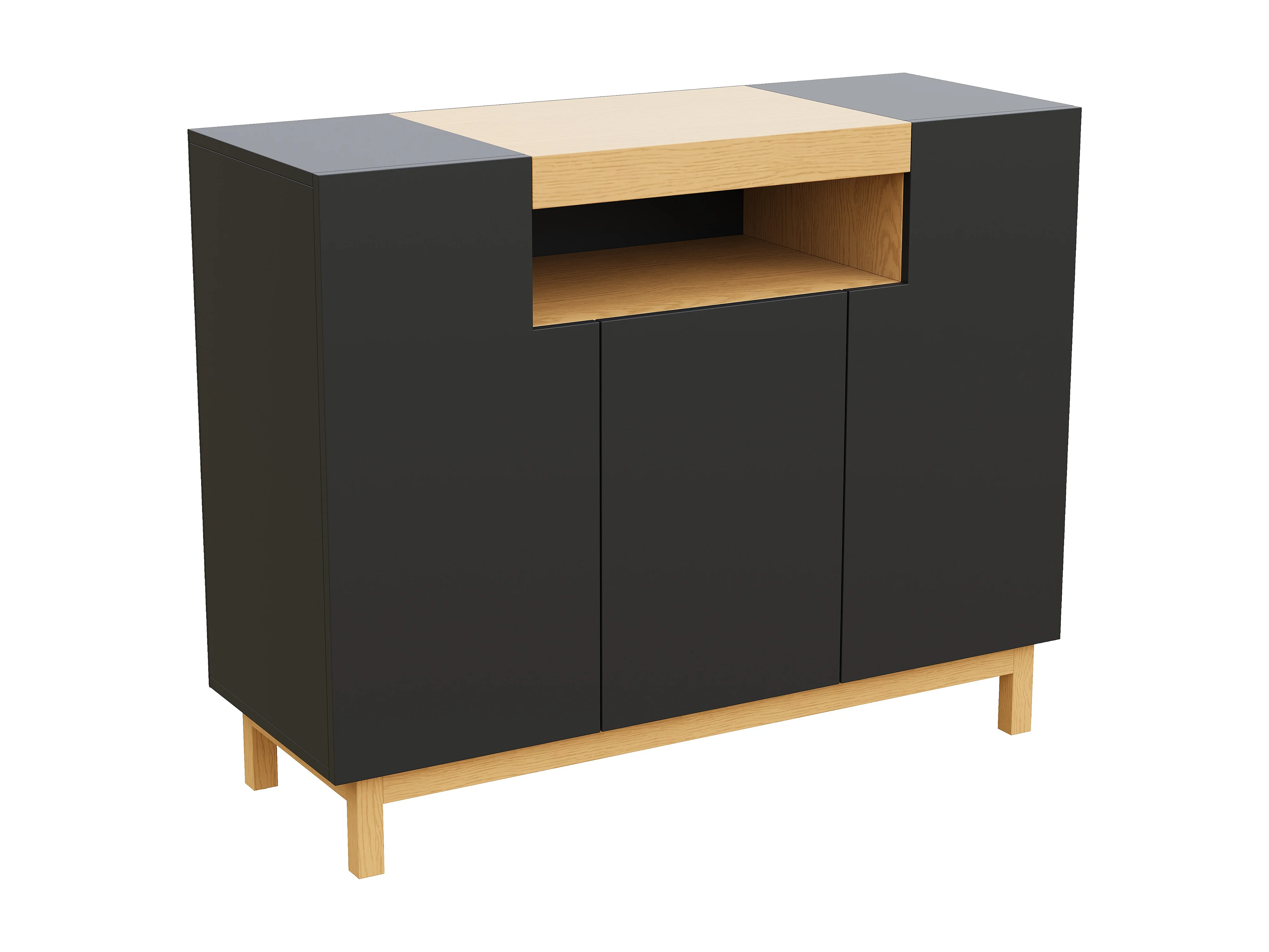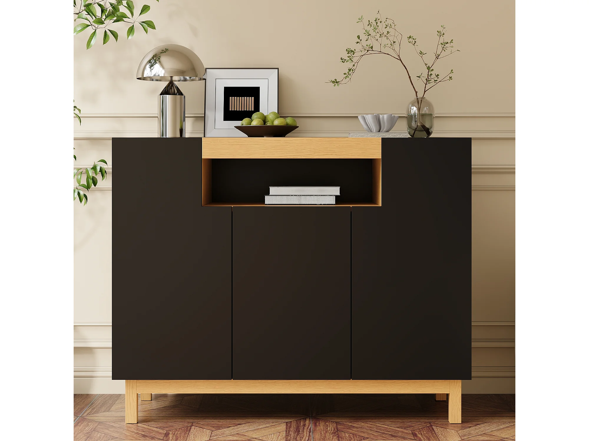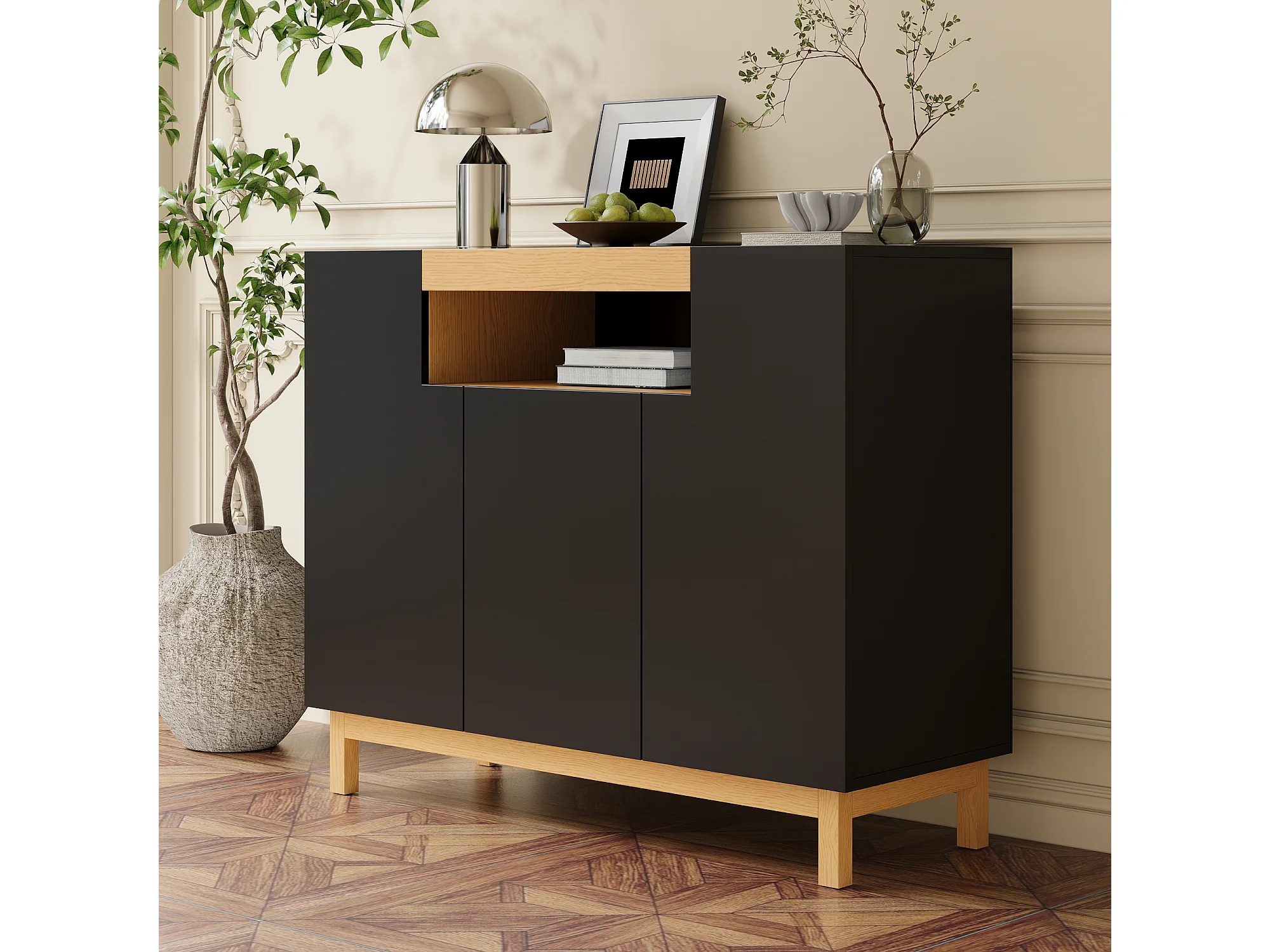 Buffet 120,5x42x96 cm - avec 3 portes - étagères ouvertes - panneaux de particules - noir