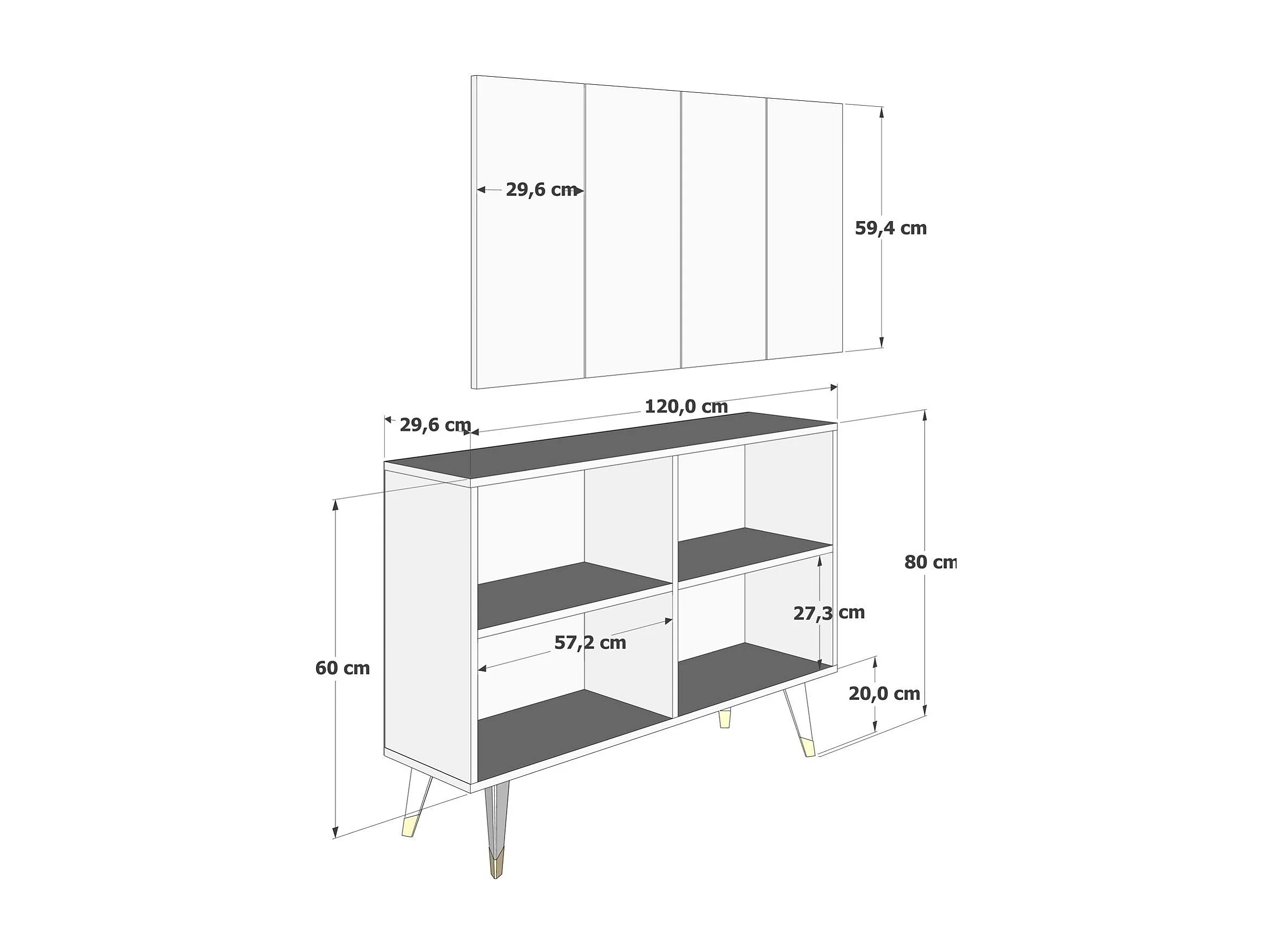 Buffet – 120 cm x 80 cm x 29,6 cm – Or et Anthracite – Panneau de particules mélaminé