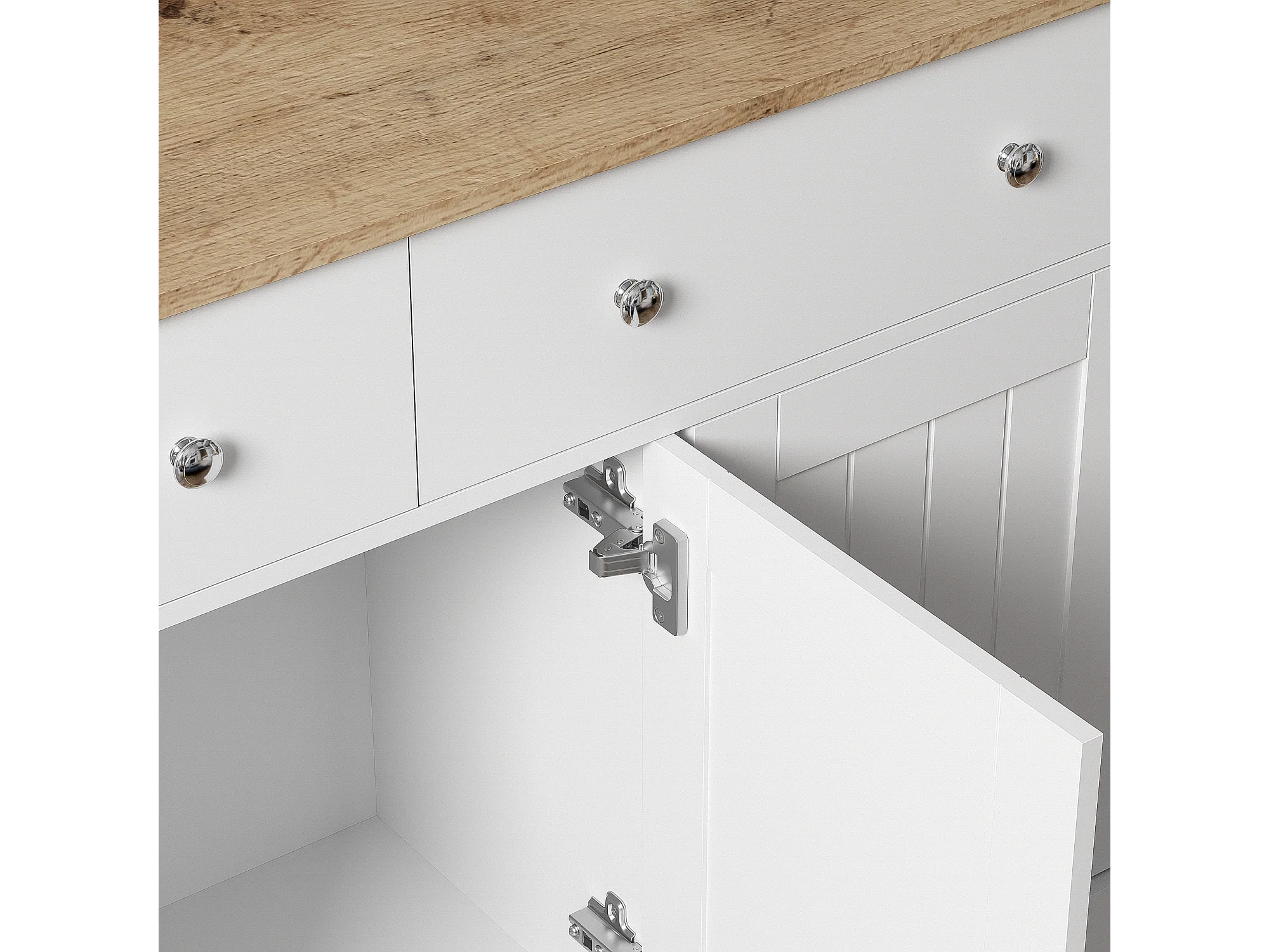 Buffet 120x36x80.5 cm avec deux tiroirs et rangement panneaux de particules en blanc pour salon