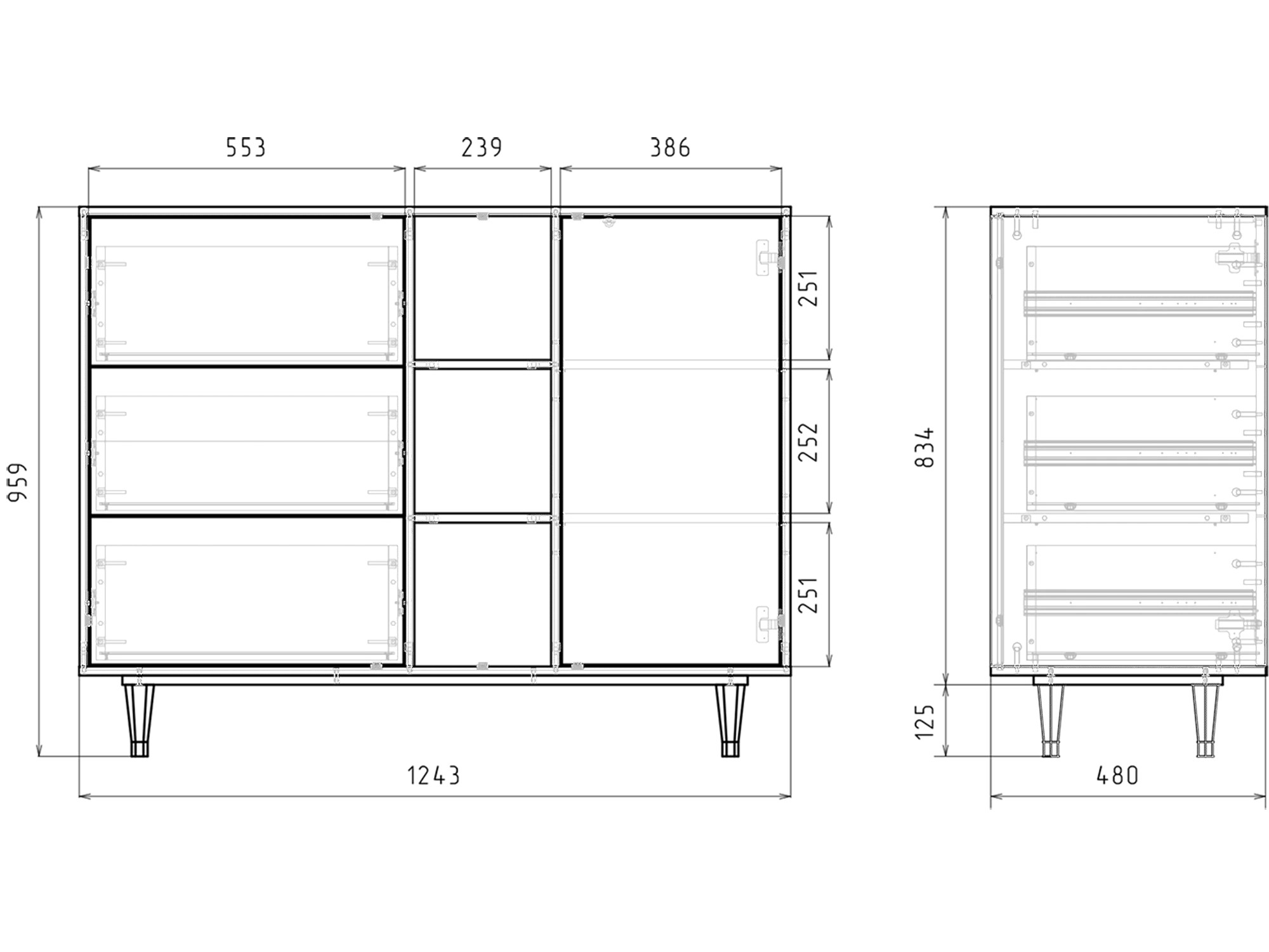 Buffet - 125x98x48 cm - BS2 - Knitted Pattern, Anthracite