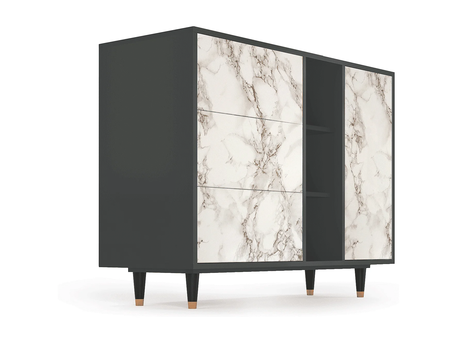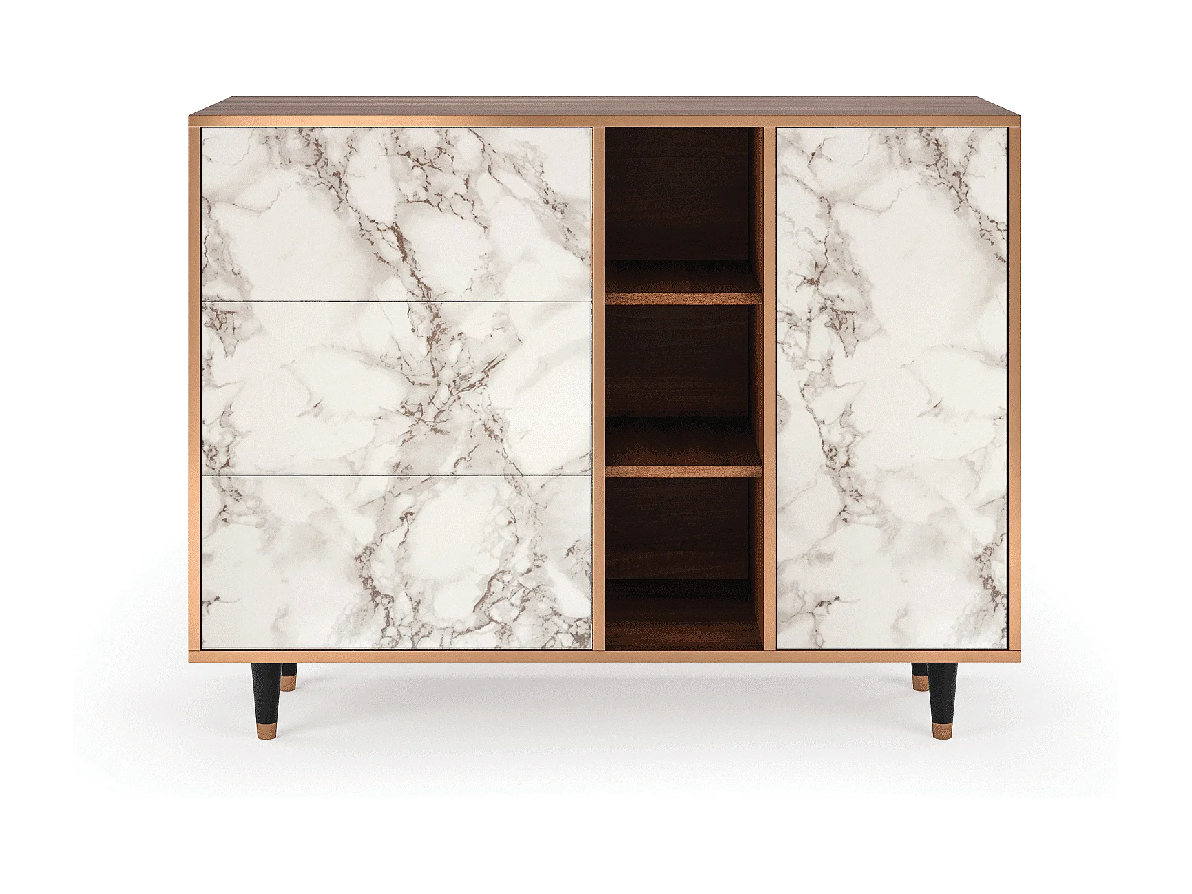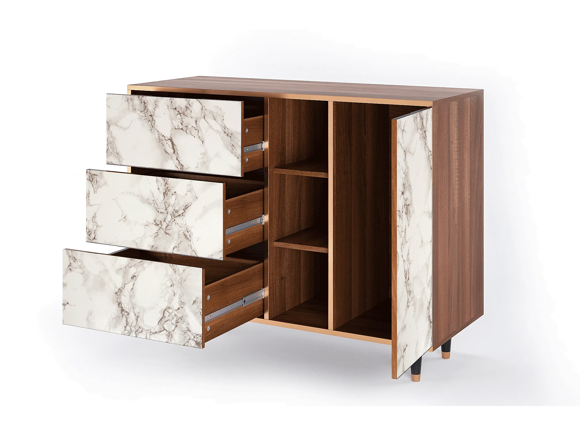 Buffet - 125x98x48 cm - BS2 - Milk Marble, Noyer