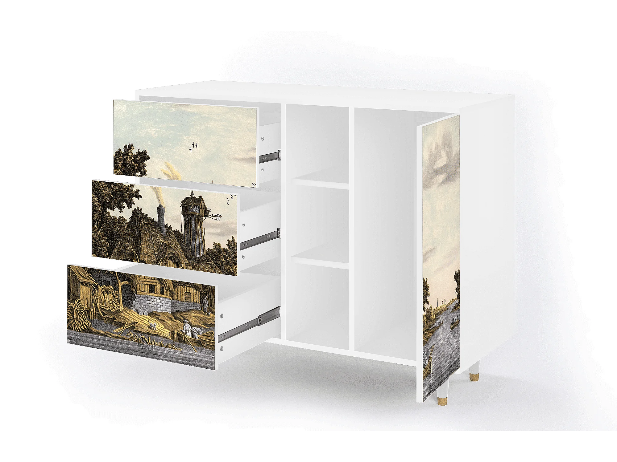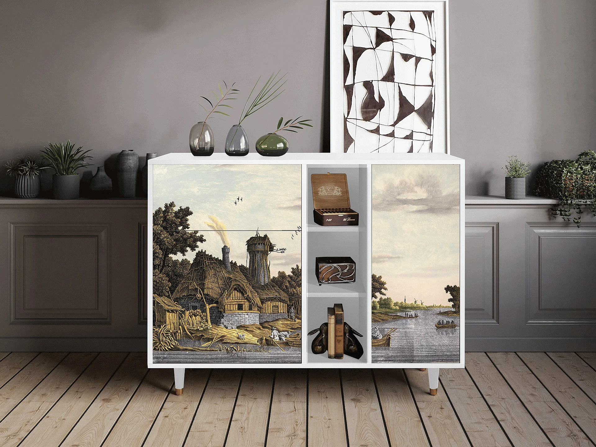 Buffet - 125x98x48 cm - BS2 - Mill along a River, Blanc