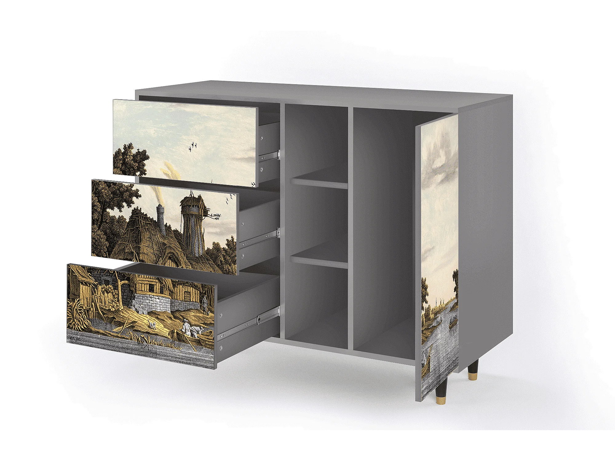 Buffet - 125x98x48 cm - BS2 - Mill along a River, Gris