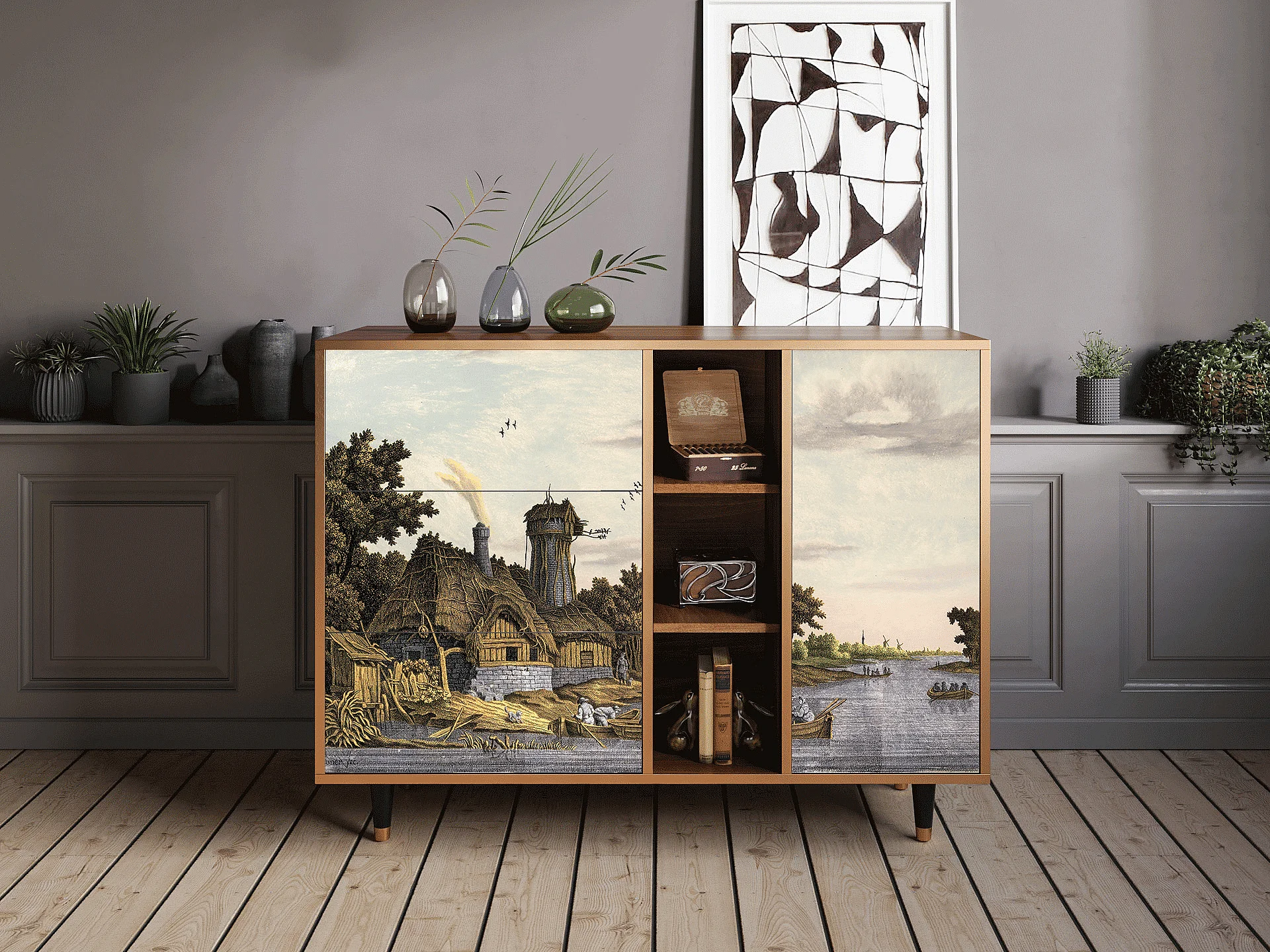 Buffet - 125x98x48 cm - BS2 - Mill along a River, Noyer