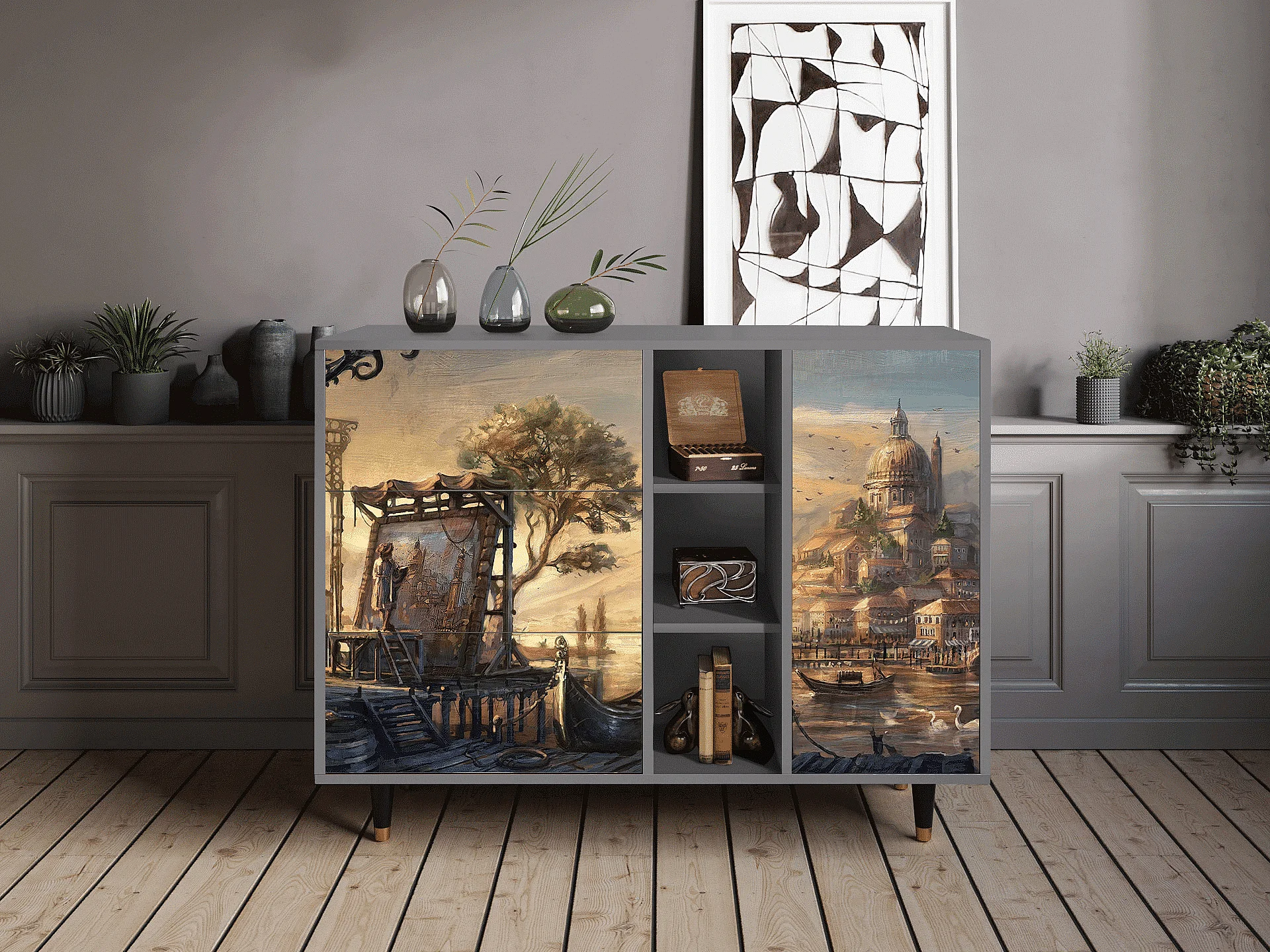 Buffet - 125x98x48 cm - BS2 - Farms in a Village, Gris