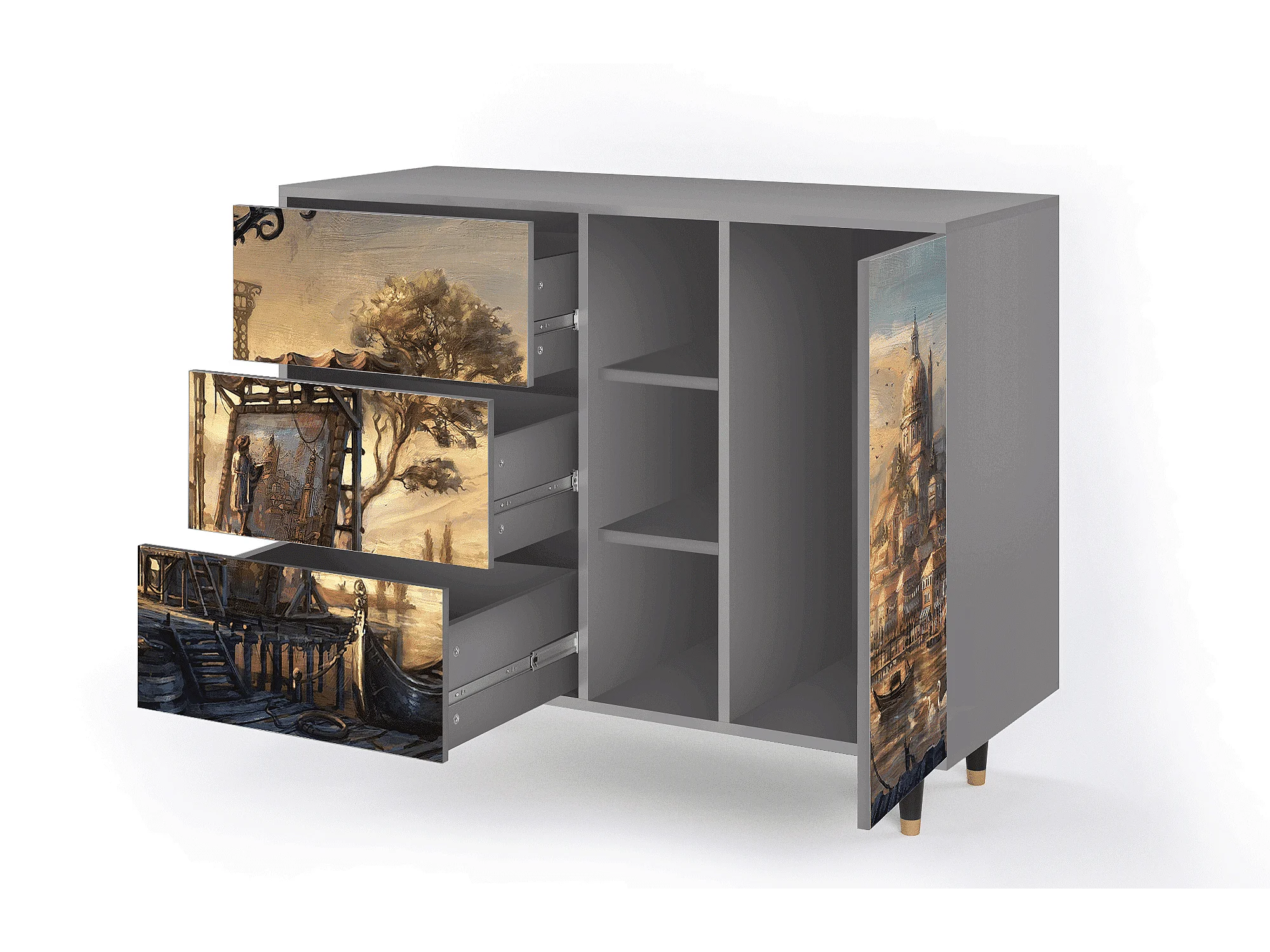 Buffet - 125x98x48 cm - BS2 - Venice, Gris