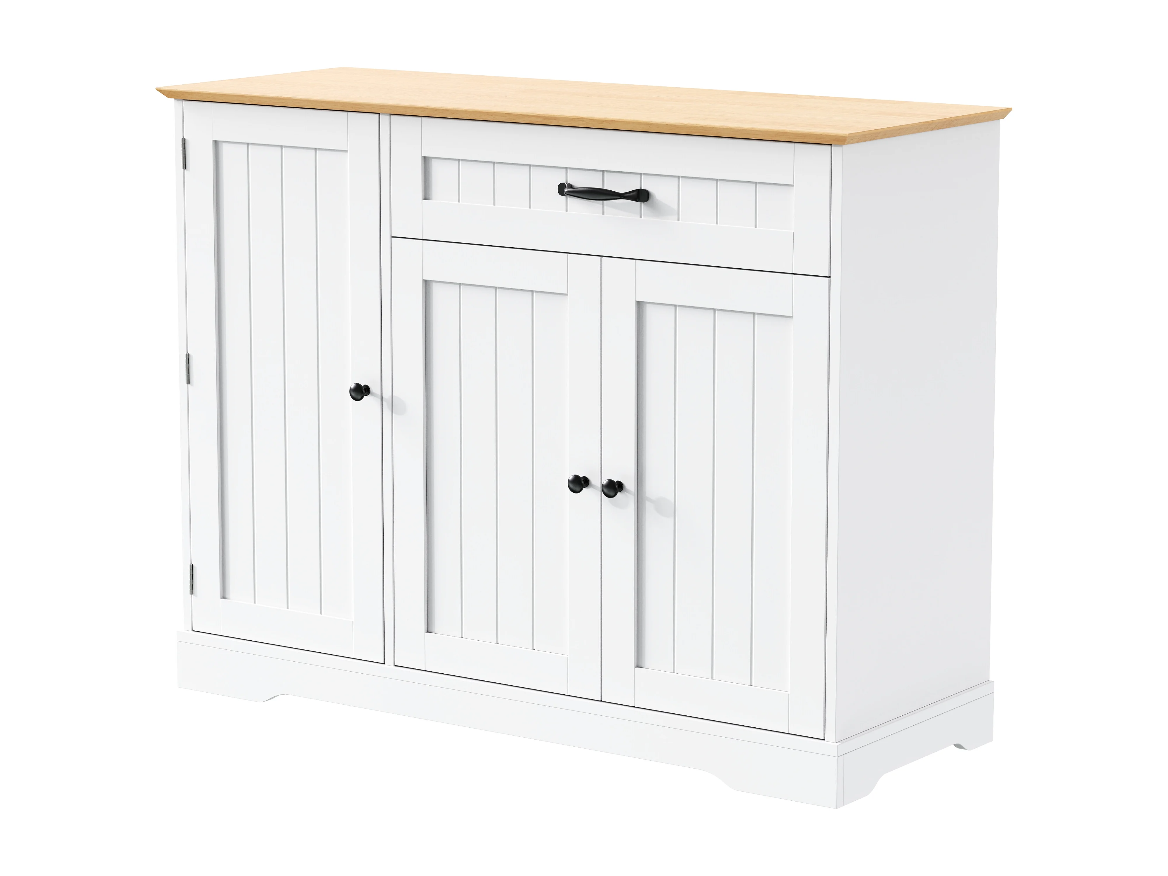 Buffet 3 portes avec 1 tiroir, charnières grand angle, étagères réglables, MDF, blanc et naturel