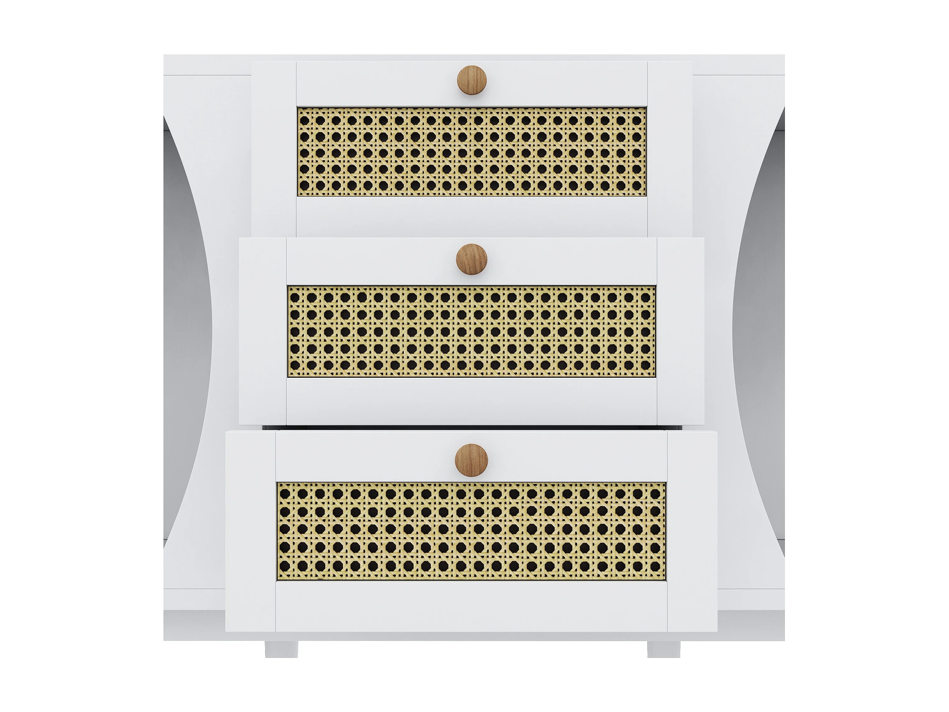 Buffet 140.5x40x76 cm avec tiroirs et étagères réglables panneaux de particules en blanc pour salon