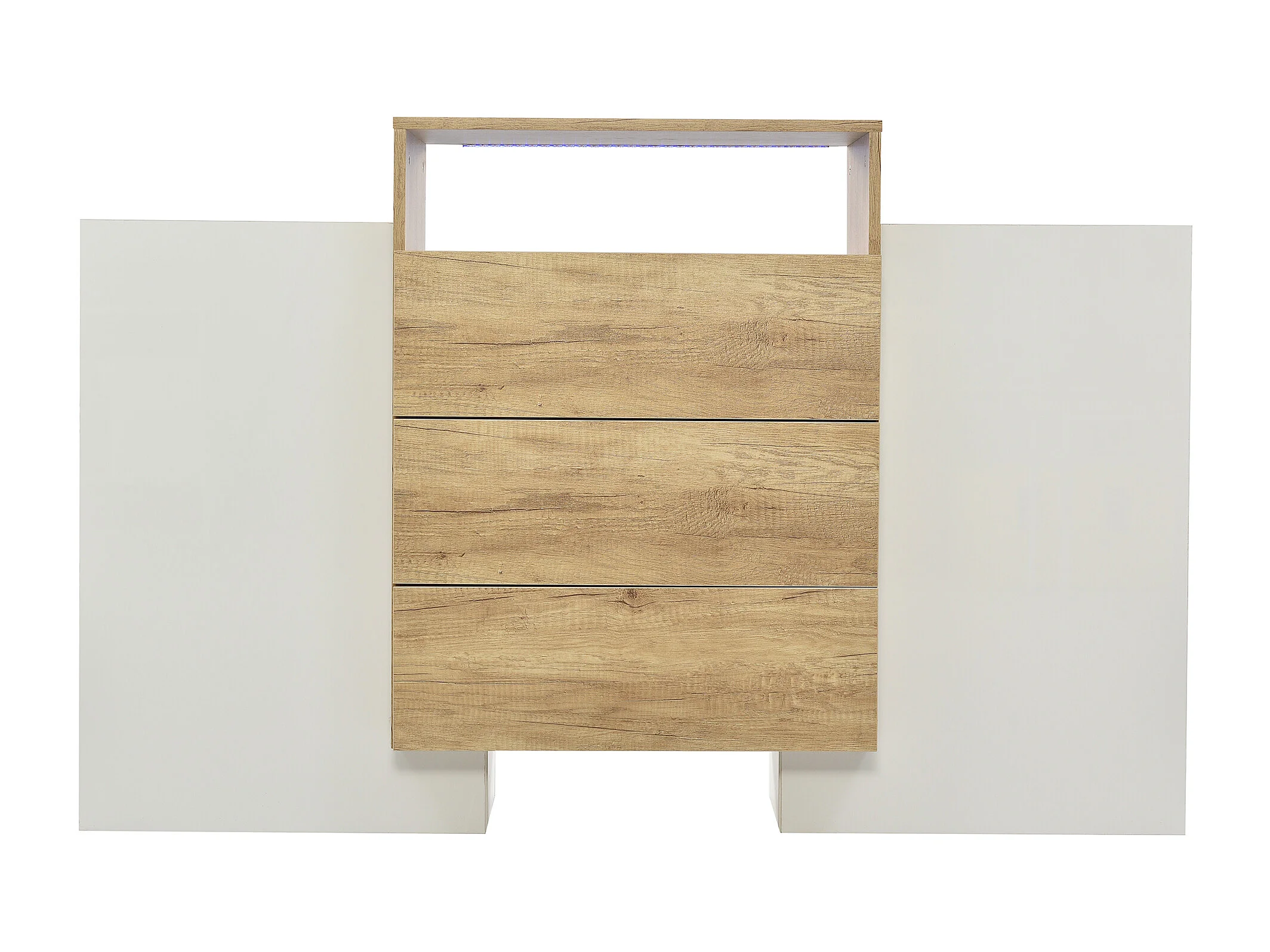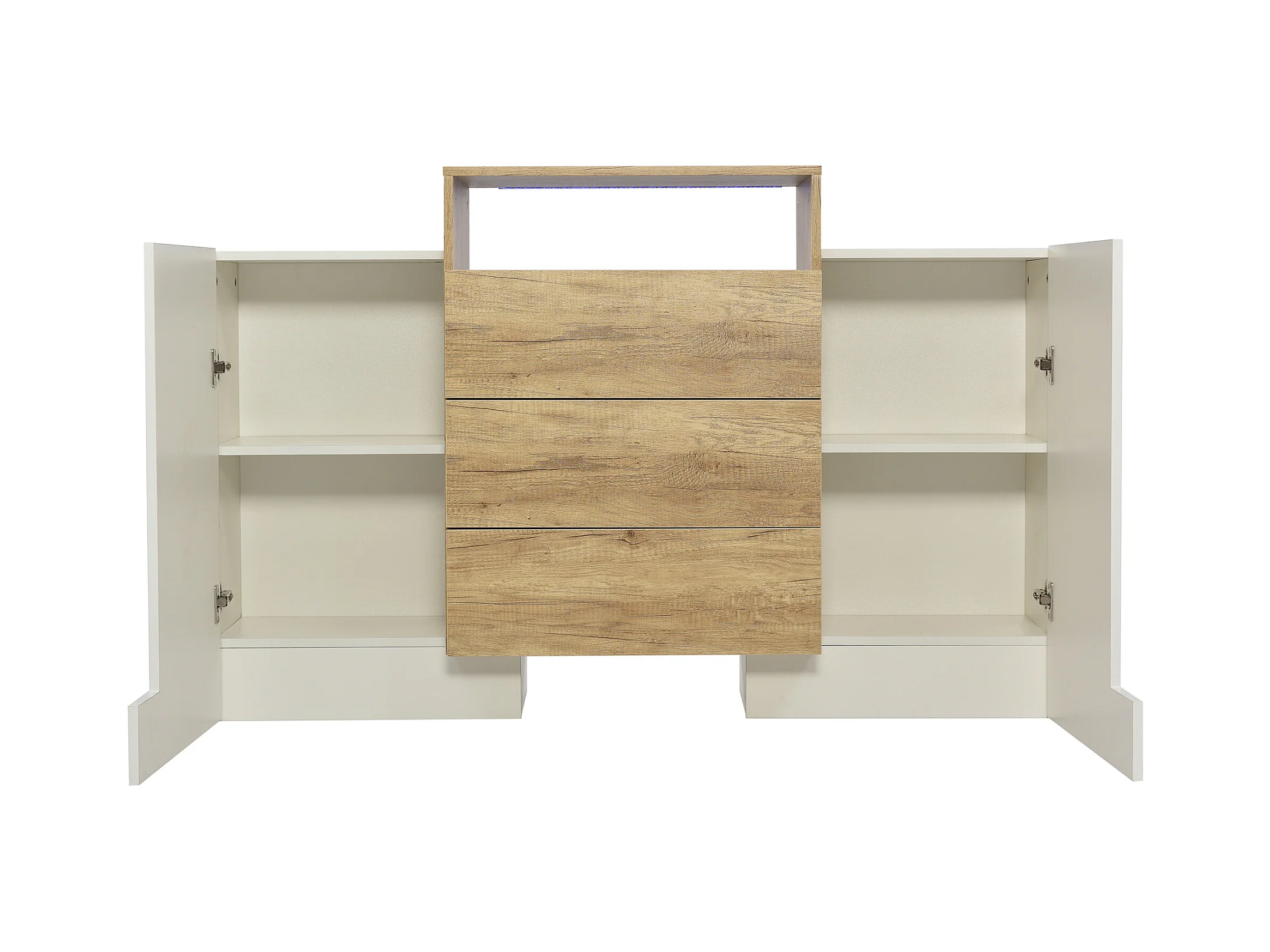 Buffet 140x30x90.5cm LED Multicolore 2 Portes 3 Tiroirs Espace de rangement Matériel MDF Couleur Naturelle