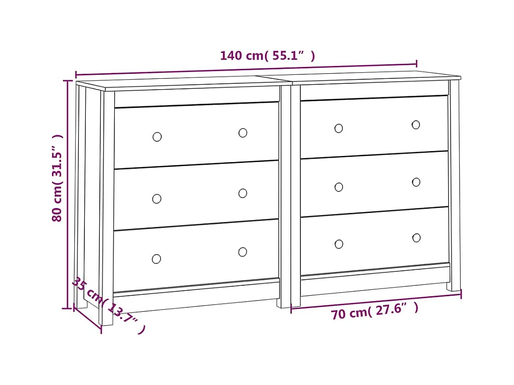 Buffet 70x35x80 cm Bois massif de pin