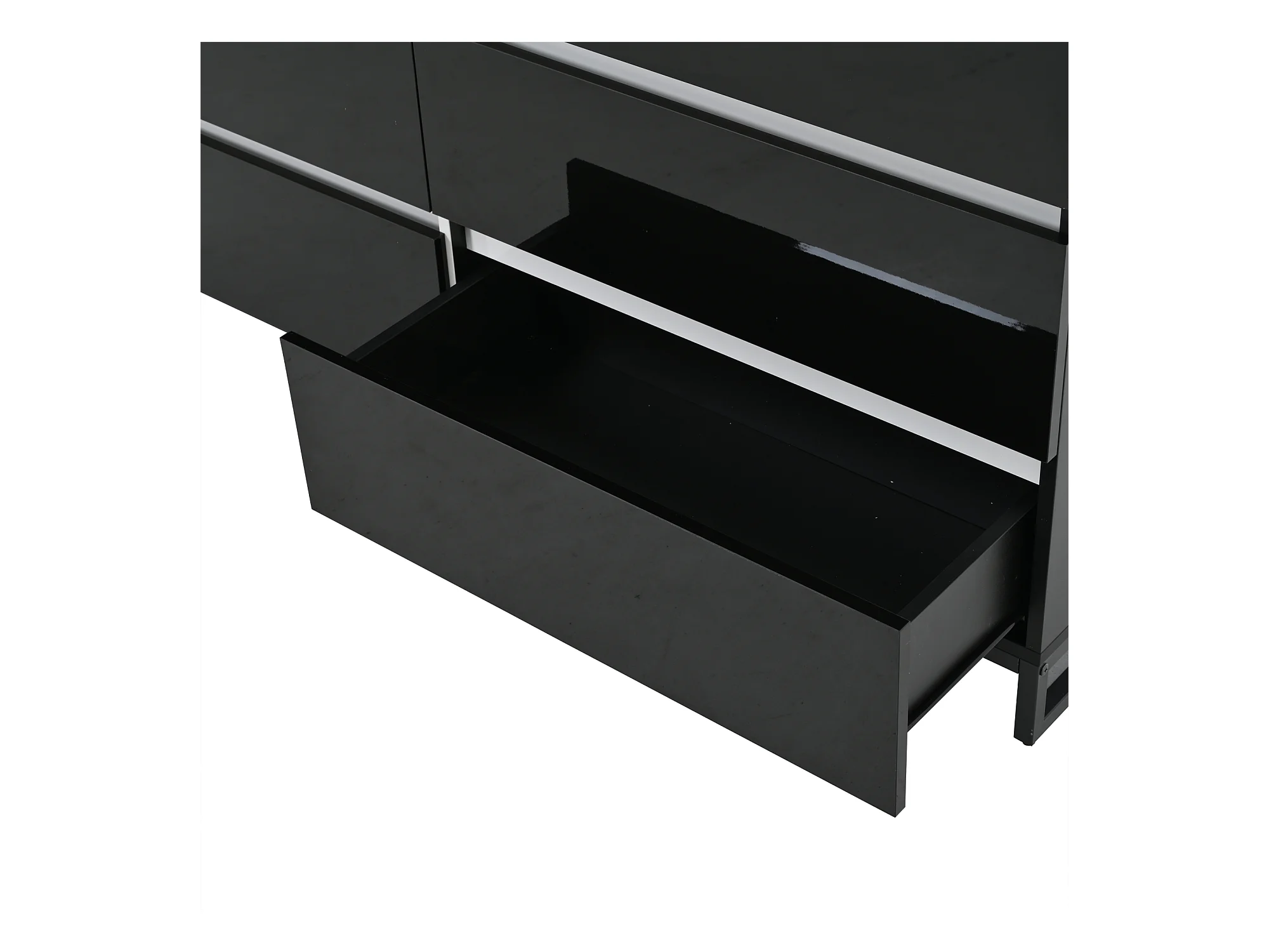 Buffet 140x39.5x78.5 cm - avec 6 tiroirs - 3 pieds en métal - Finition brillante - Noir + Blanc