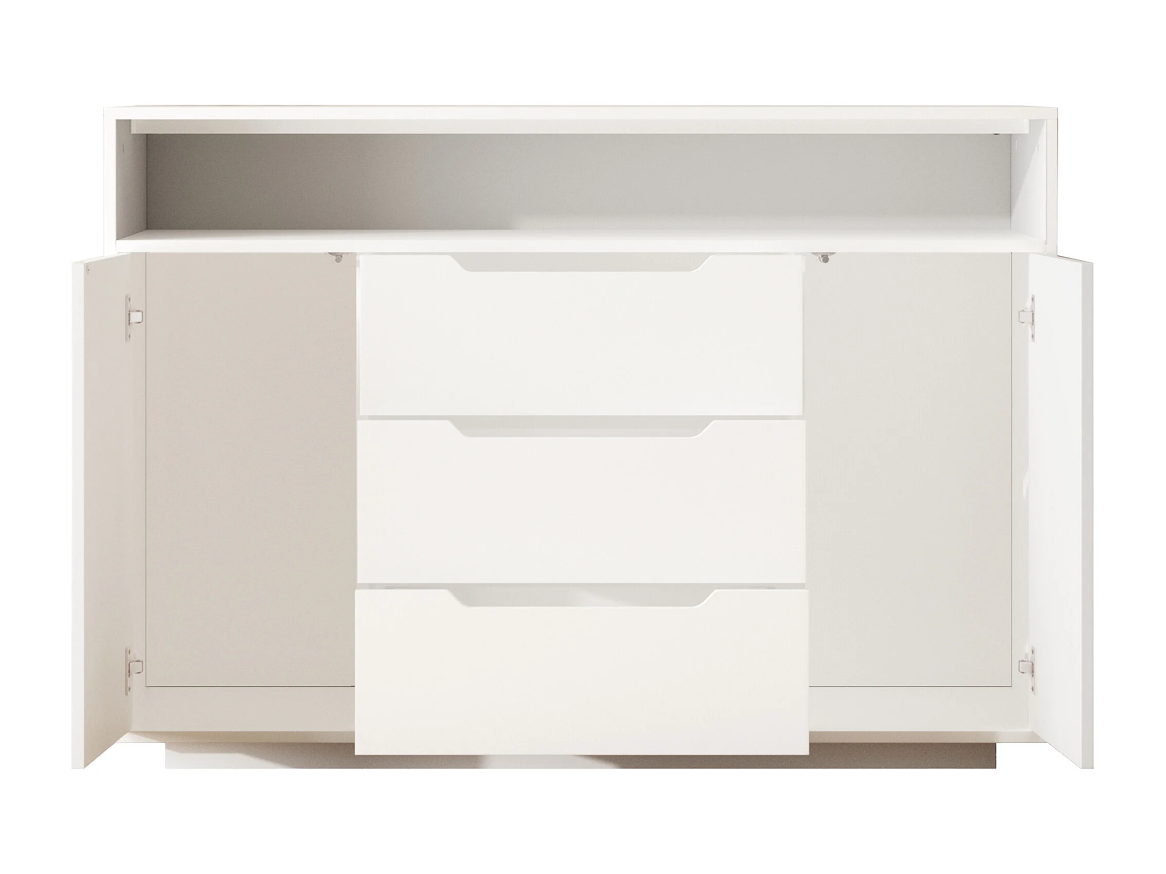 Buffet 120x40x85 cm, 1 étagère ouverte, 3 tiroirs, portes avec étagères, bois d’ingénierie, blanc