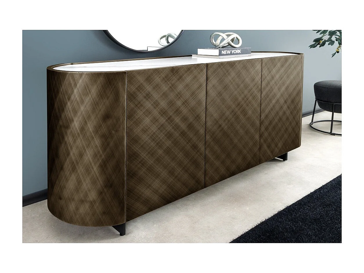 Buffet 150 cm 3 portes 1 tiroir bronze et marbre blanc – Collection MILANO
